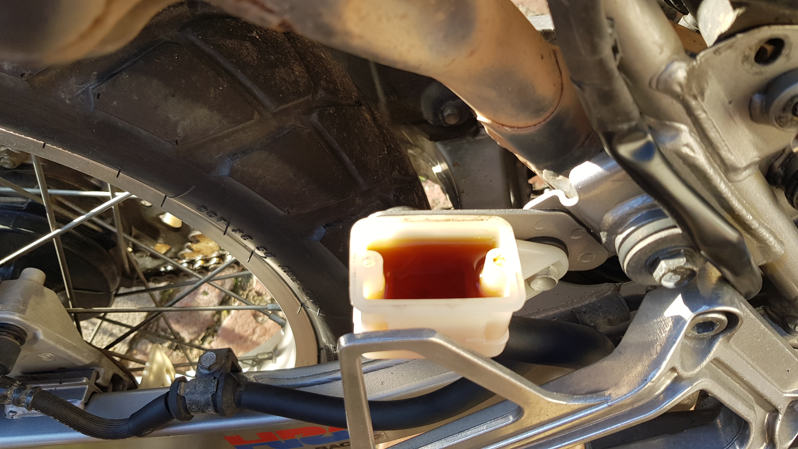 Heute hatte ich Zeit wieder was an der Domi zu machen. Gebrauchte Spiegel habe ich noch in meinem Lager gefunden, dann gleich die Handguards ordentlich angebaut und die Bremsflüssigkeit gewechselt. Die hatte es aber auch bitter nötig.