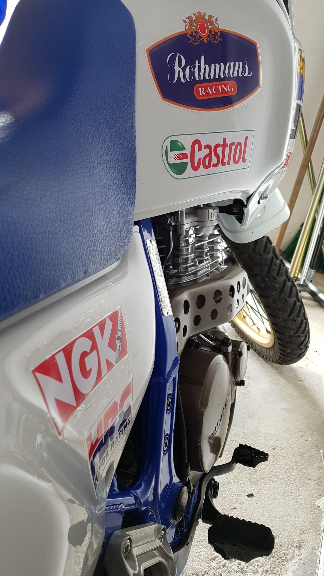 -wenn Motto, dann richtig und nur eins! In dem Fall vielleicht den Rothmannsaufkleber auf den Tank kleben und die Farben und Formen des Logos aufgreifen und ans Fahrzeug packen. Könnte mir vorstellen die Umrandung des Heckteils, Verkleidung und Koti vorn mit rot/orangener Linie betonen. Sonst nichts!