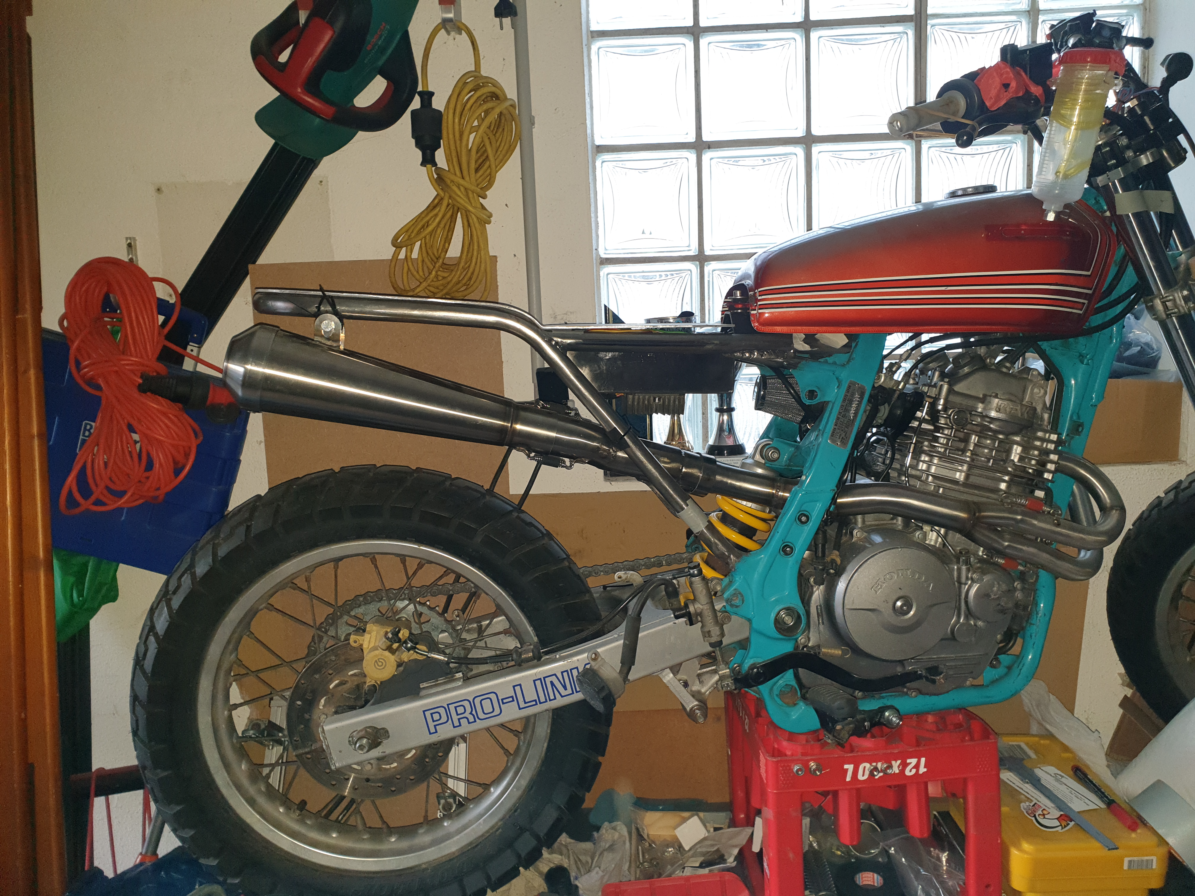 - Motor: habe ich einen NX500 (ist aktuell drin) und einen NX650 (der braucht aber ne neue Nockenwelle und eine Überarbeitung des mittleren Lagersitzes), ich überlege auch noch alle Schrauben auf Edelstahl zu wechseln