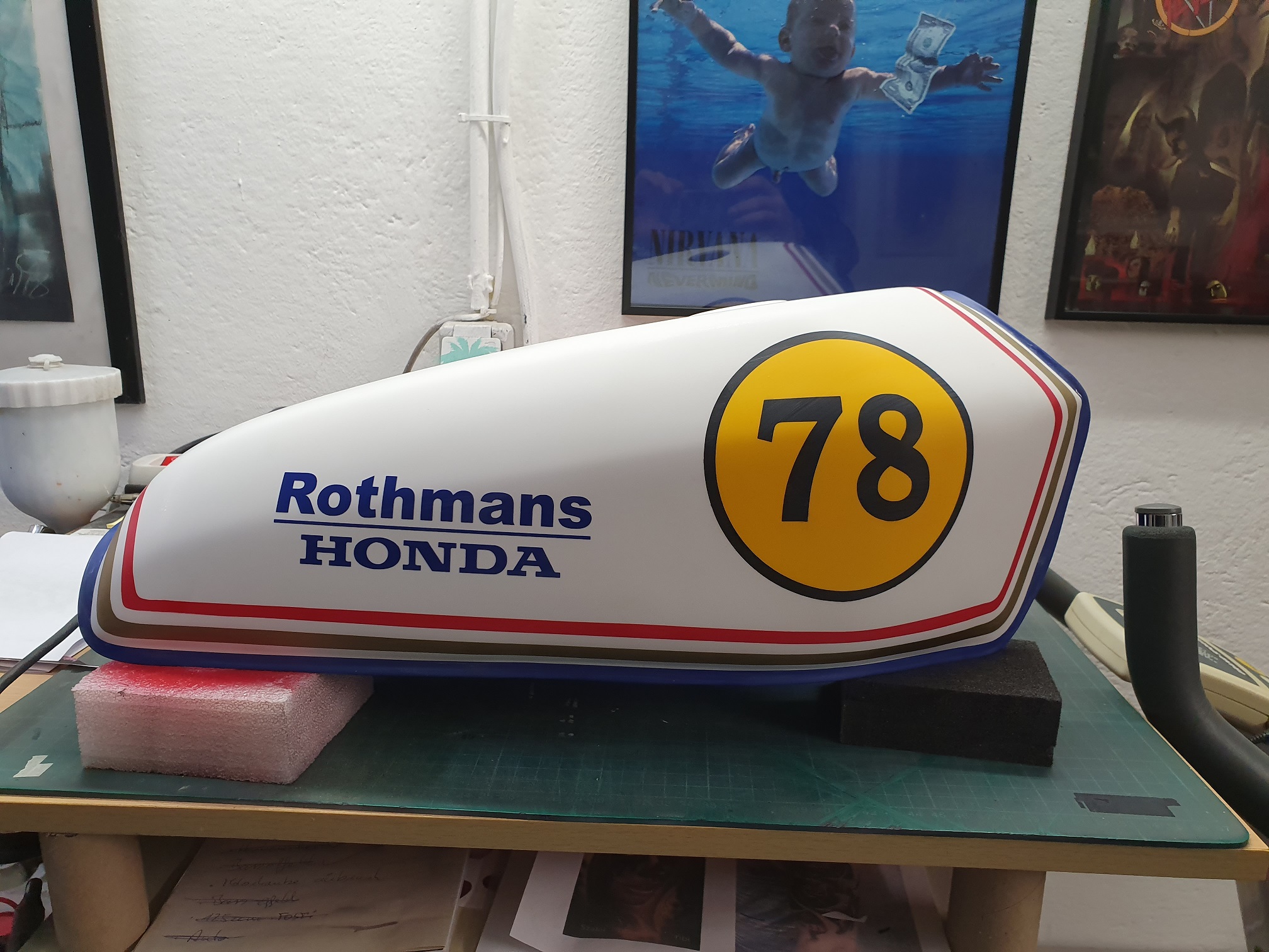 Der Tank hat schon seine erste Lackierung bekommen wurde wieder angerauht und ist zur Zeit beim Airbrushen