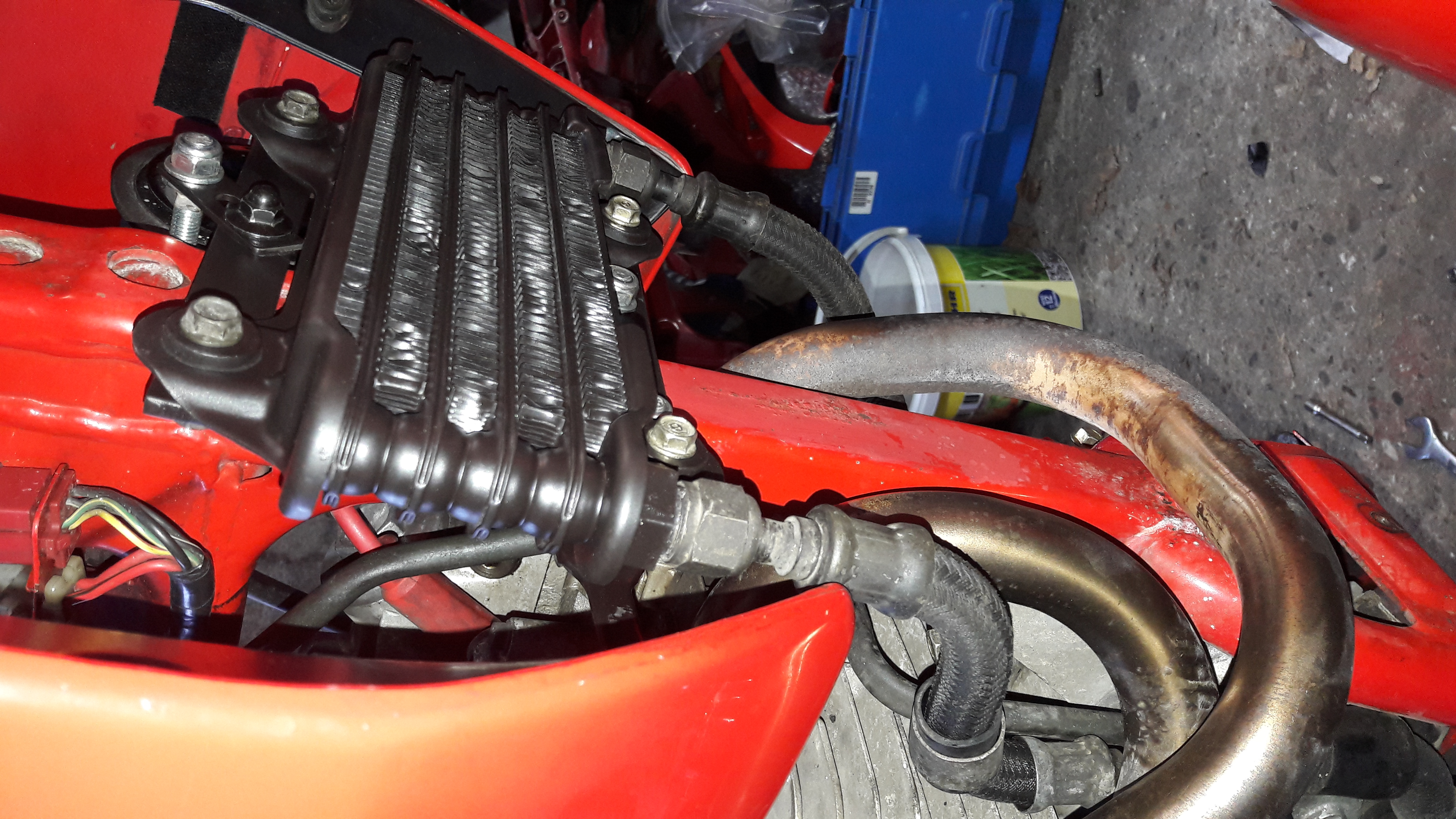Der Kühler ist doch im Rücklauf oder nicht? Das Öl wandert durch den Kühler zurück in den Tank (Ölreservoir). Das dürfte mit dem Ansaugen der Ölpumpe von daher nicht von Bedeutung sein.