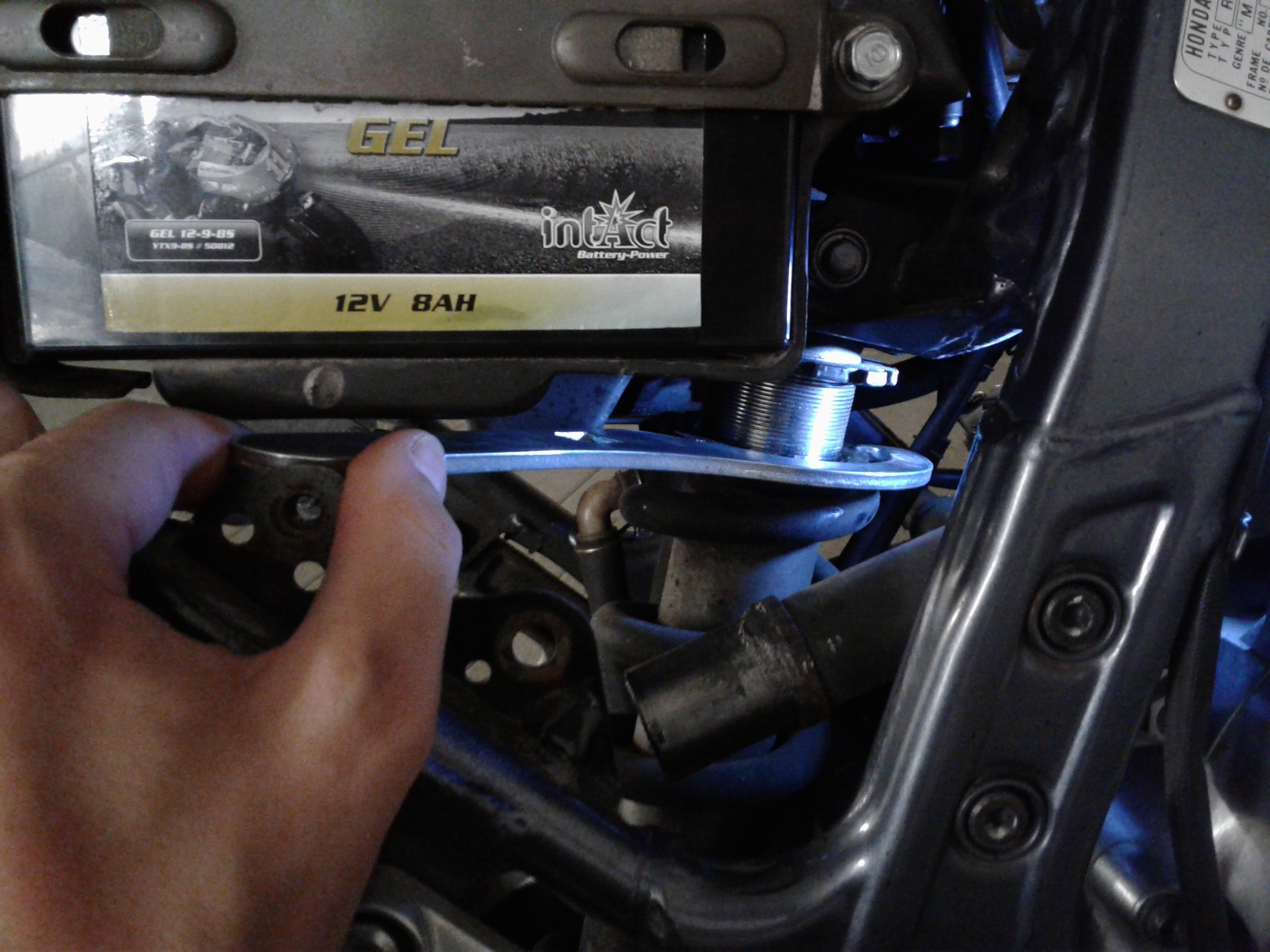 hier ist meine Methode um die Federbein-Vorspannung einzustellen (ich habe die RD02, Bj.'93). Hab schon von schwierigen Ausbauversuchen des Federbeins bei der RD02 gelesen, Stichwort 'obere Schraube und Mutter'.