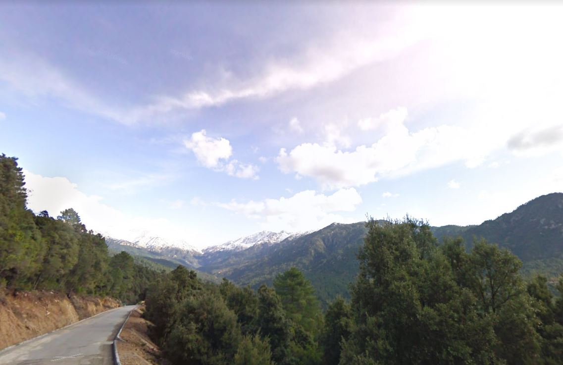 Auf der D4 bei Azzana. Die höchsten Erhebungen haben noch immer eine weiße Kappe. Anfang Mai kann es mitunter auch hier noch kühl sein. :?