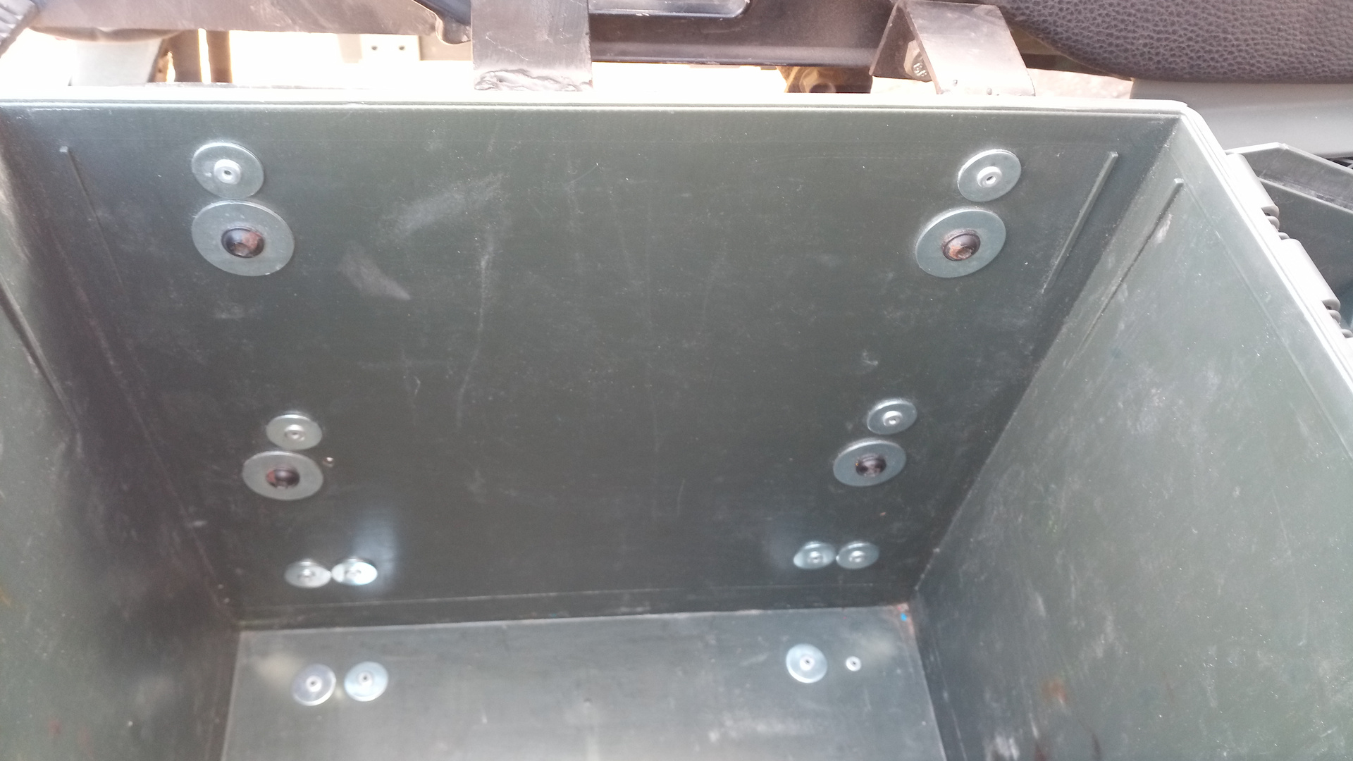 Die Kofferträger waren dran. Die Koffer selbst habe ich mit Montagewinkeln auf dem Baumarkt verstärkt und an die Halter geschraubt.