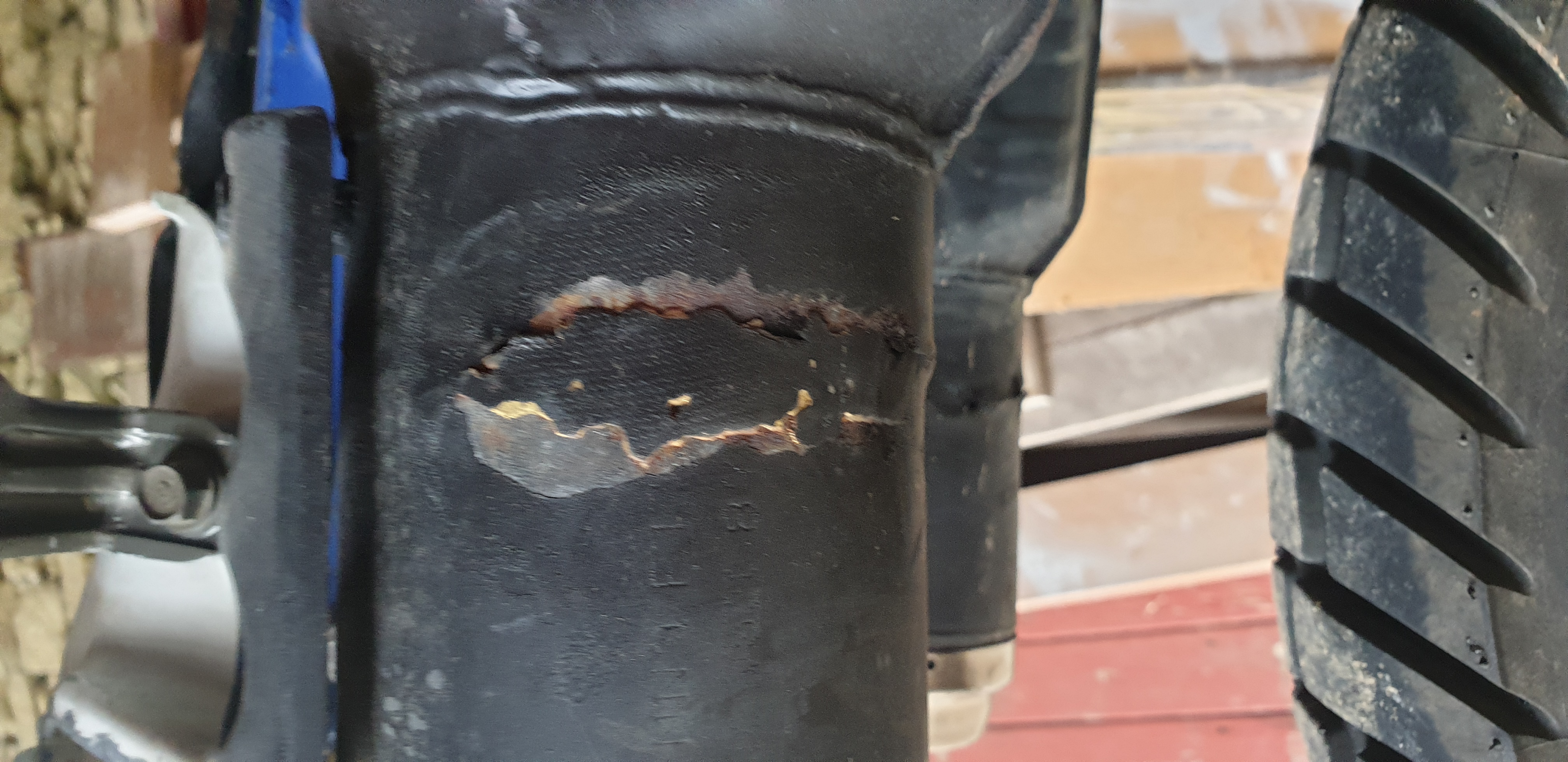 Die Maschine hat vor Feb 2018 sicher sehr lange gestanden. Aber ich bin ja seitdem über 13,000 km gefahren ohne Vergaserprobleme. Ich hab heute morgen den Auspuff abgebaut und drinnen scheppert es ordentlich. Leider kann mein Bekannter hier das Ding nicht wieder zu schweissen. Ich check heute Nachmittag in einer Traktowerkstatt im Dorf ob die das wieder zu bekämen wenn ichs mit der Flex aufschneide. Wenn das geht versuch ich mit "entleertem" Endschalldämpfer mein Glück. Auf den Fotos sieht man die beiden alten Schweisspunkte. Einmal ganz am Ende, eine weitere senkrecht verlaufende Schweissnaht.