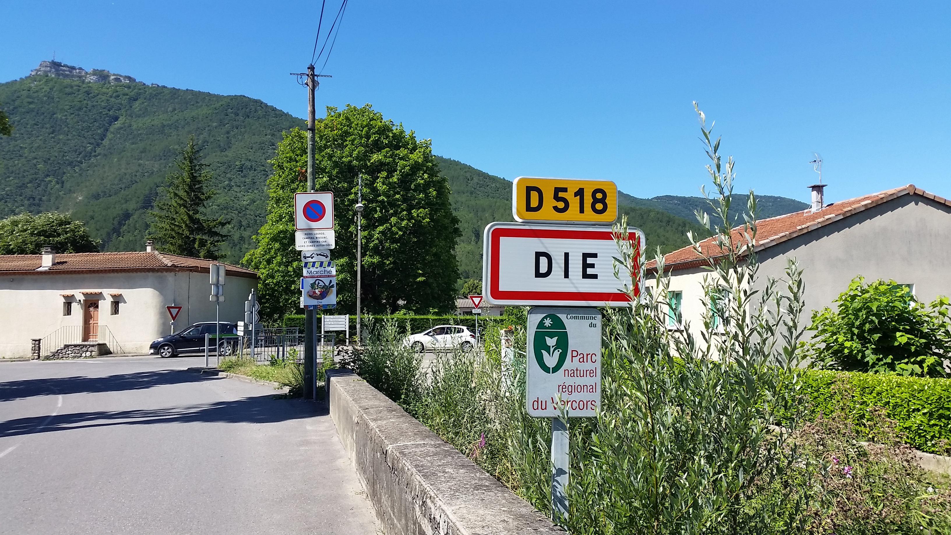 Bildas: Erst mal das petit déjeuner. Von wegen klein. Nur halt keine Wurst. In die Jahre gekommene Waschmaschine des Hauses und die Frühstückseierlieferanten. Heute morgen zur D2 hoch und das spektakuläre Gegenüber fotografiert. Von hier kann man die D76 gut sehen. Dann nach Ponte de Royans. Heute morgen kaum was los. Also entspannt Foddos machen. Einige hier im Forum haben das auch schon real gesehen. Aber wie diese ,,Balkone" abgefangen sind....