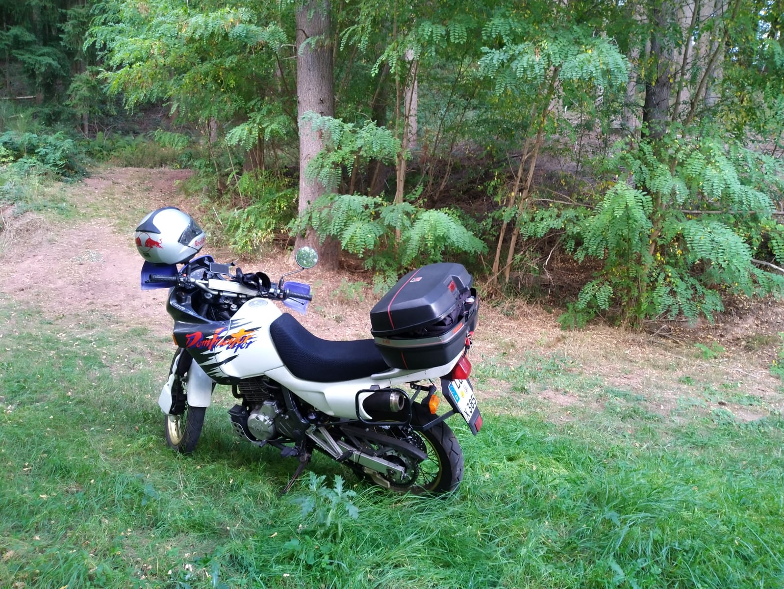 ich habe meinen Nemo 2 an der linken Fußraste oben, bei mir auch Kofferträgerhalterung, montiert (siehe Detailbild). Auf der rechten Seite könnte sich der Deckel beim Sturz aufdrehen, daher :lol: