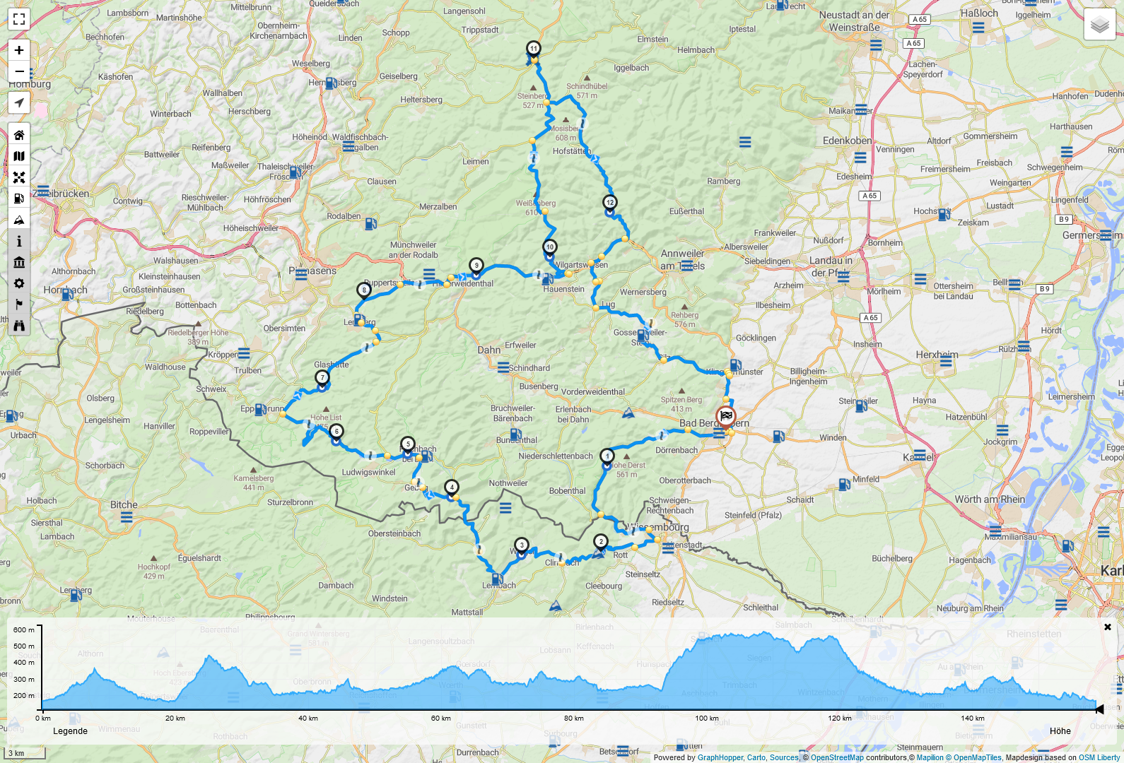 Tourlänge bis Lauterbourg: 221 km
