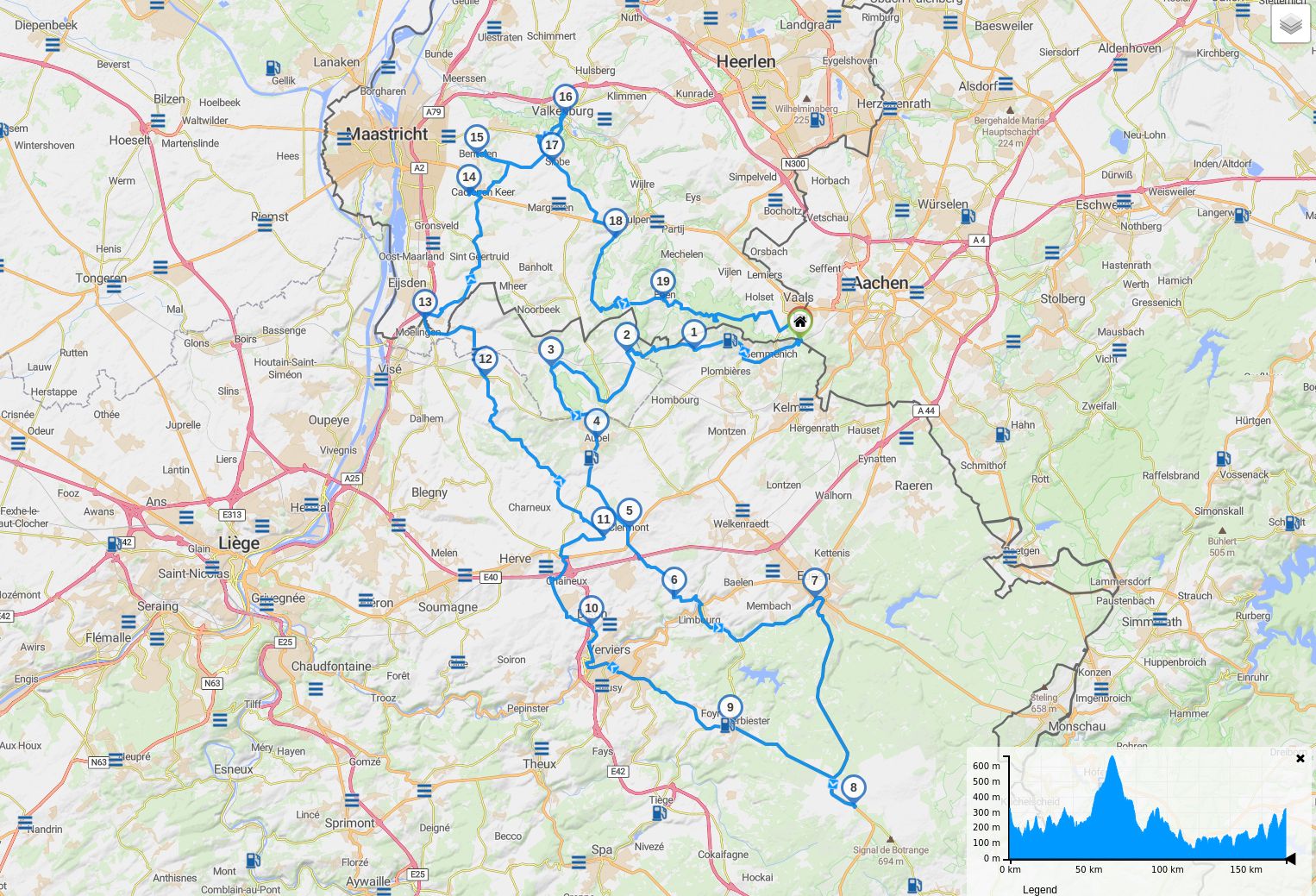 Als Treff- und oder Startpunkt eignet sich der Dreiländerpunkt DE/BE/NL bei Vaals direkt hinter Aachen.