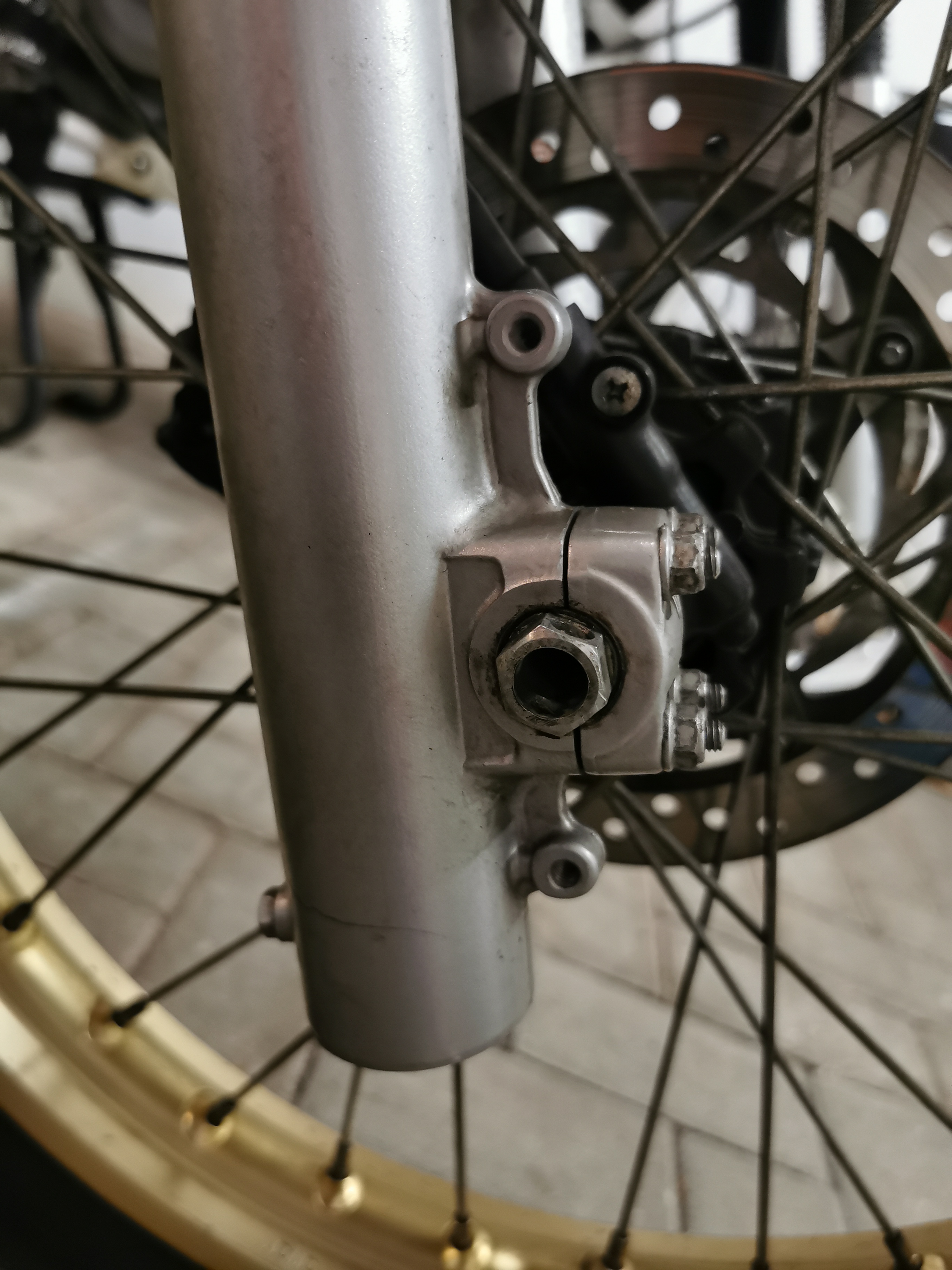 Sind die oberen Schrauben an der Gabelbrücke denn noch vorhanden?