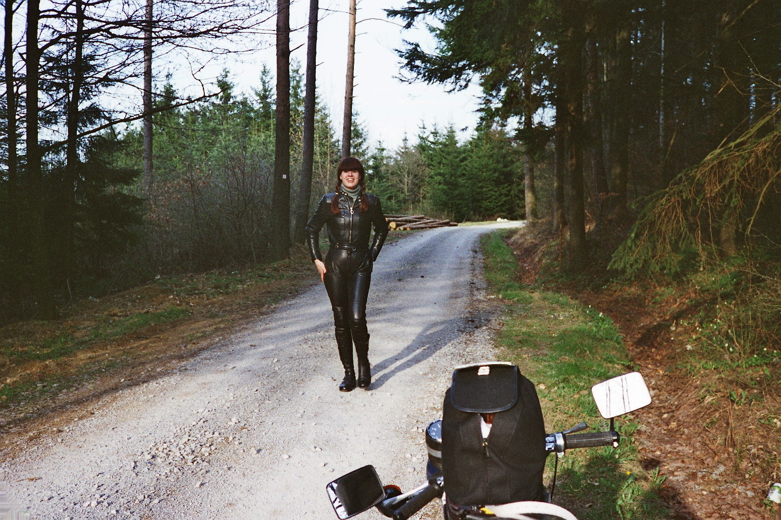 - Die Emme im heimischen Stall. Nee, nee: Auf der Spanienreise 1977 besaß Sigrid schon ihre Lederkombi! Aber 1976 waren noch Jeans angesagt.