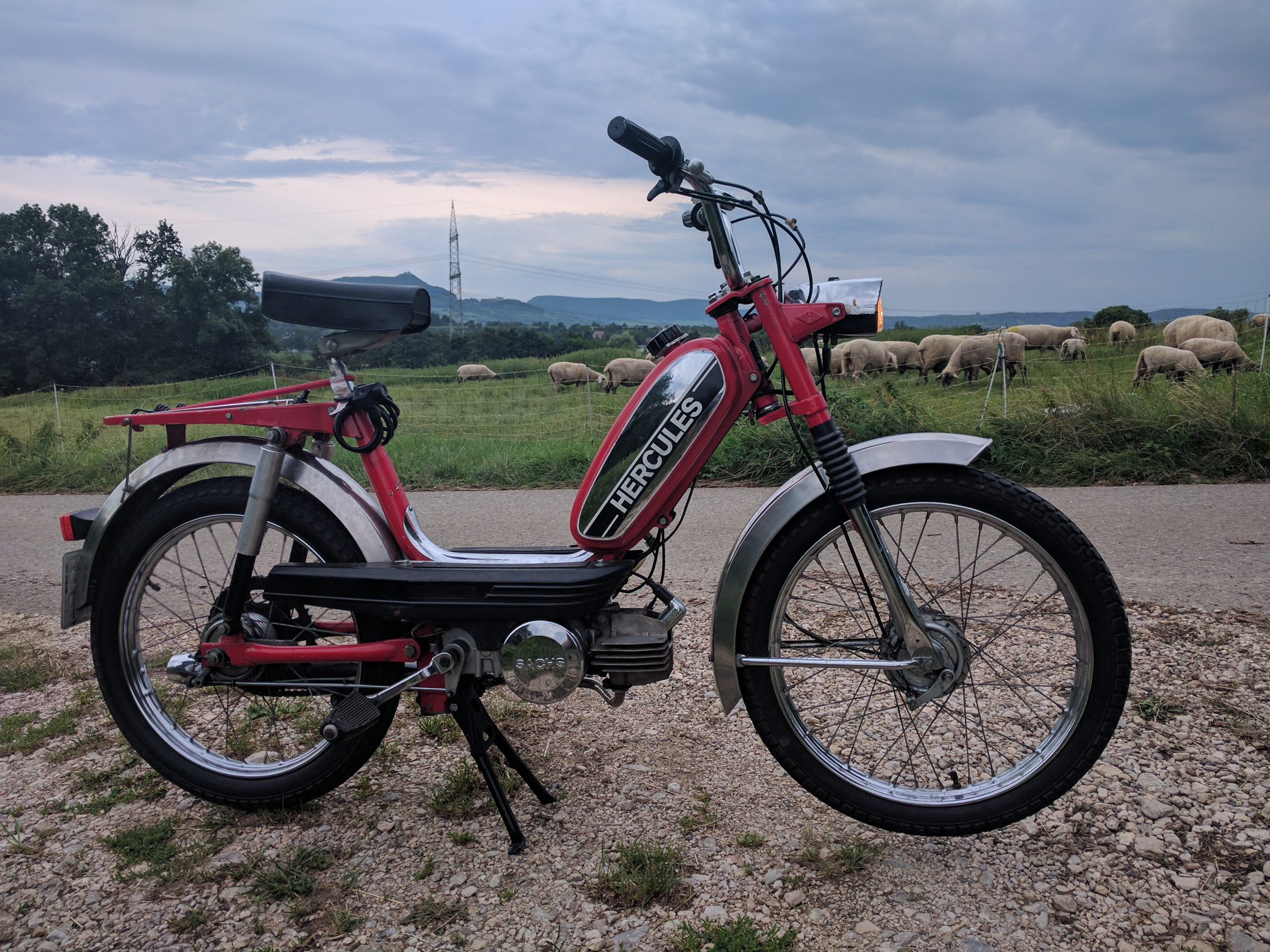 Inzwischen (6500 km und zwei Jahre später) ist das M4 Mofa umgerüstet auf P3 Moped und trägt mich schweren Kerl doch um einiges leichter :-)