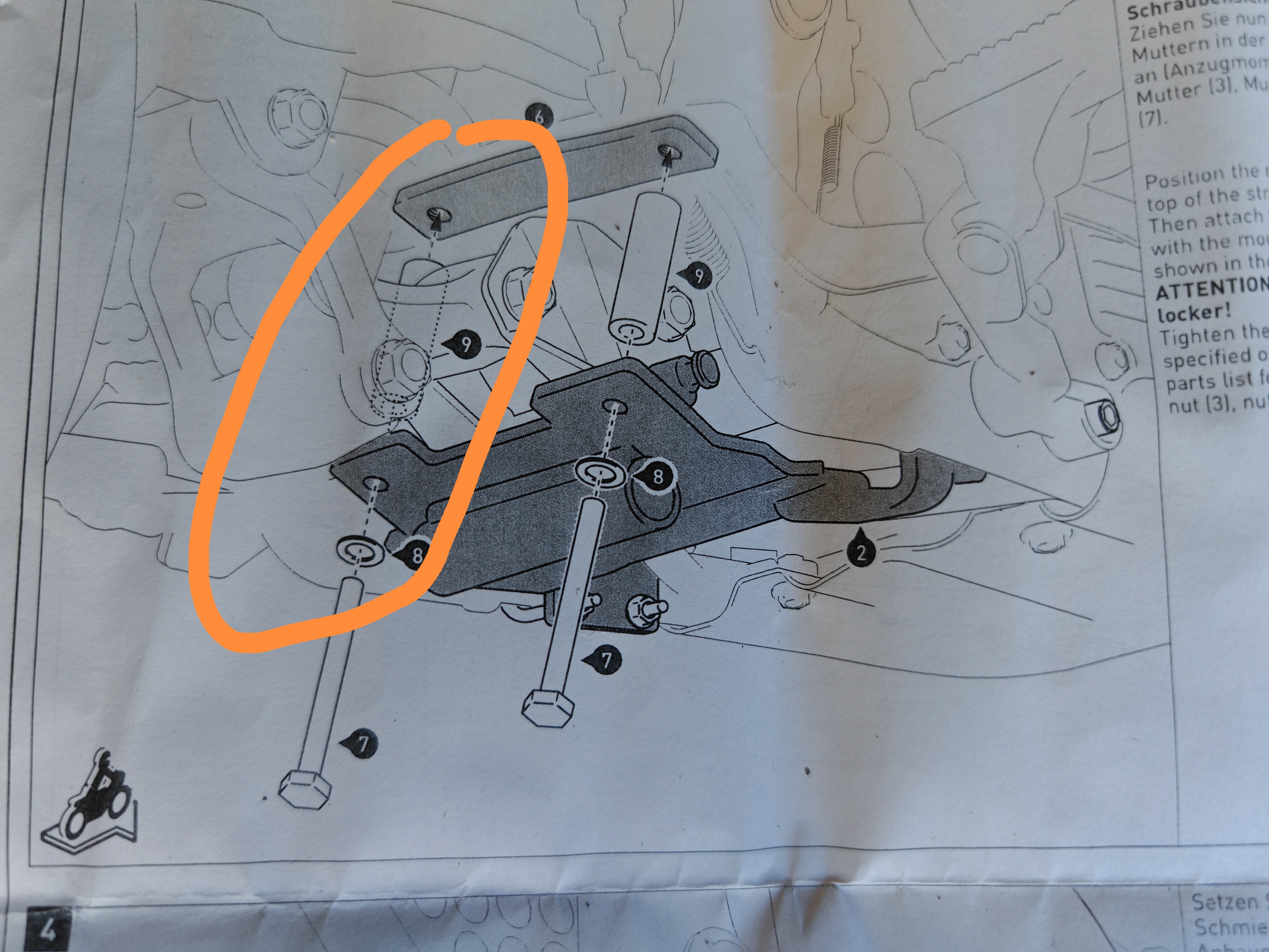 Bin gerade dabei, den Hauptständer von SW Motech abzubauen... Was eine Scheiße... Wie bekomme ich denn hinten links die Schraube inkl. Passhülse in das Blech, was über die Stoßdämpfer Aufnahme liegt? S. Bild. Ich verzweifel da gerade dran... Irgendwo drückt sich die Hülse schief, ganz zu schweigen davon, dass ich überhaupt das Gewinde des Blechs erreiche oder etwas sehe...