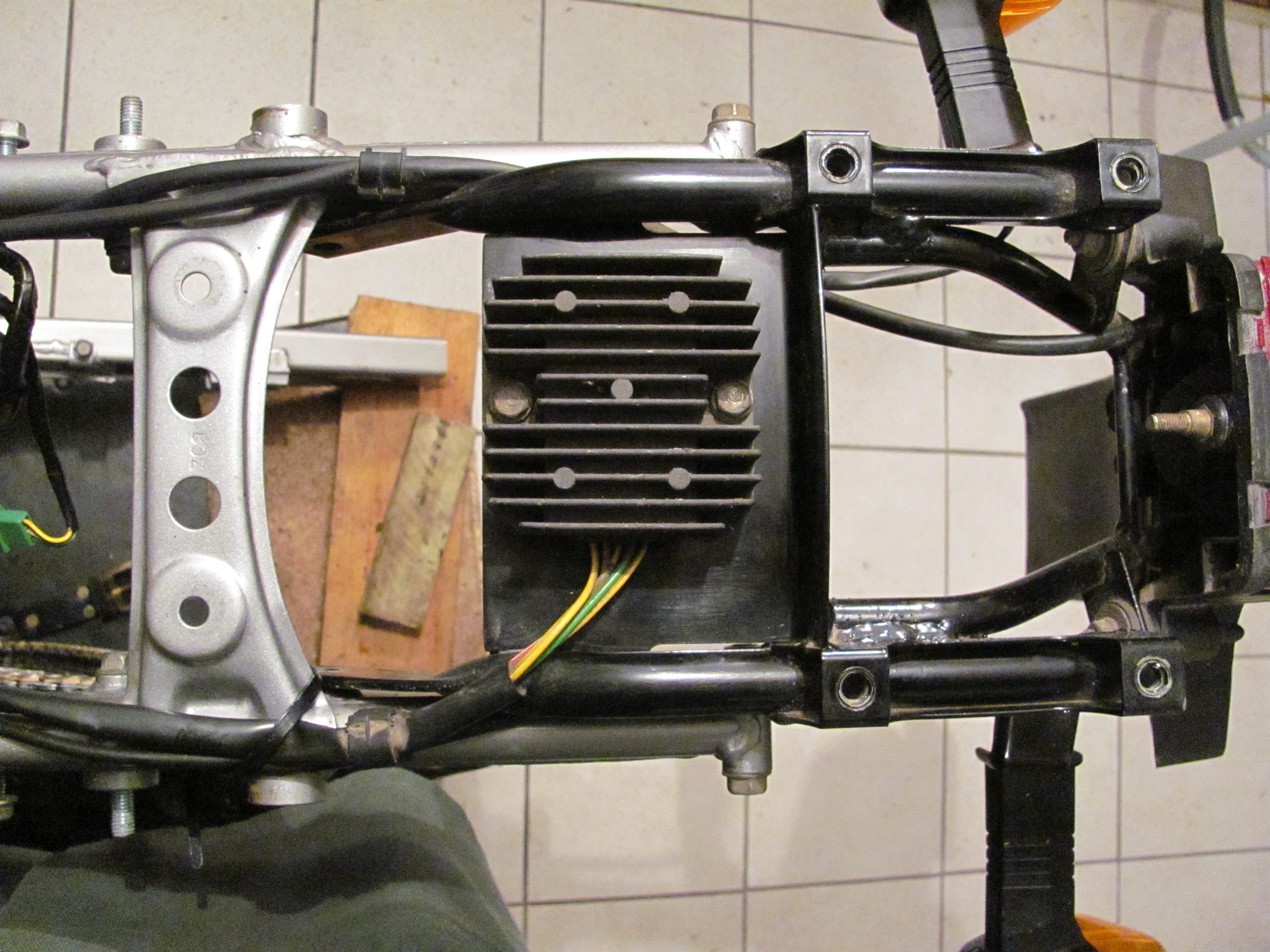 Platz für die CDI wäre wohl auch noch zwischen Gleichrichter und Rücklicht (im Bild rechts). Dort habe ich eine komplette Alarmanlage verbaut. Nachteil: Man kommt an die CDI nicht mehr heran, ohne alle möglichen Teile abschrauben zu müssen.
