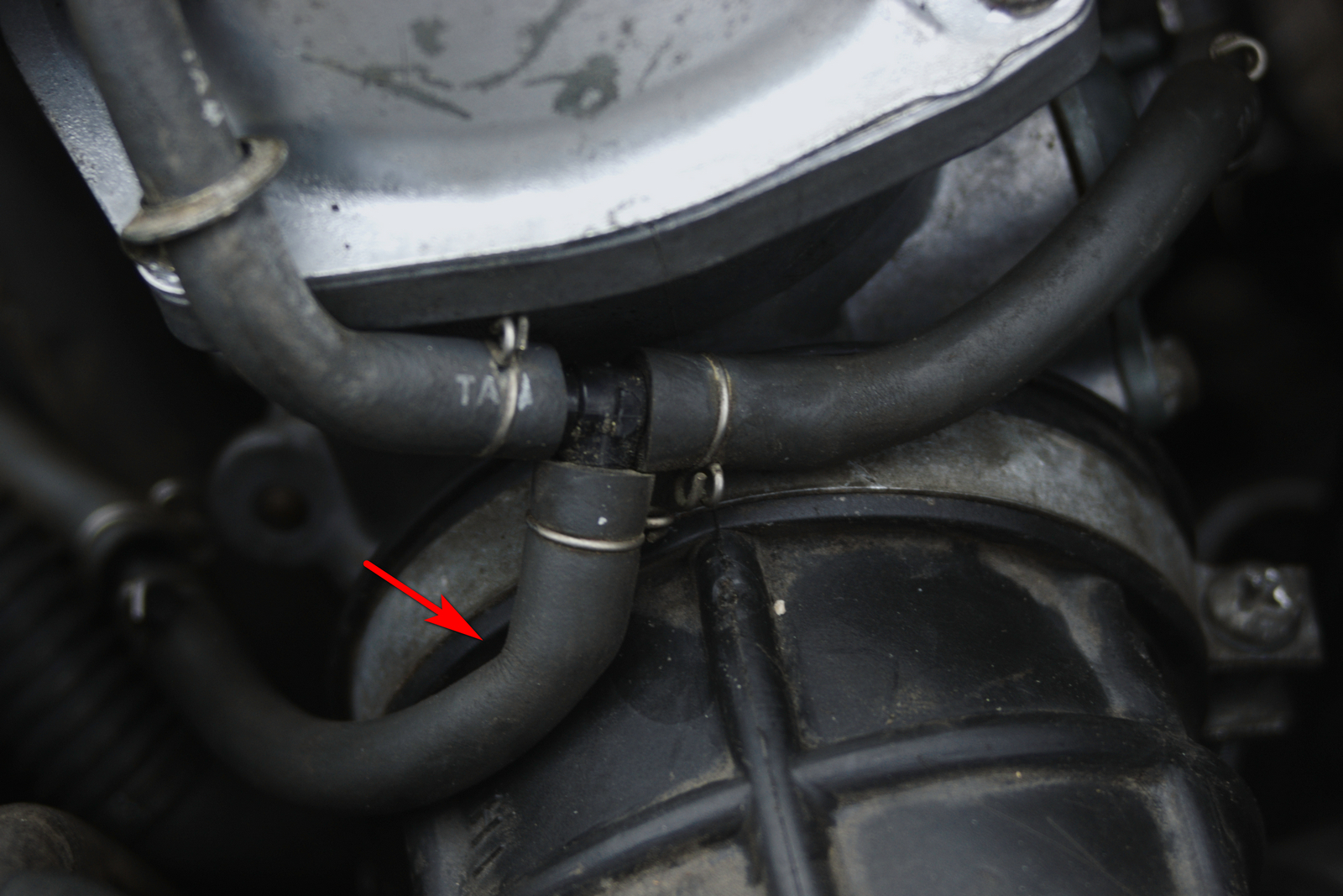 Ein Ende ist zum Überlauf/ Vergaserbelüftung. Ein Ende geht zum Seitenständer, ein Ende nach oben zu Rahmen.