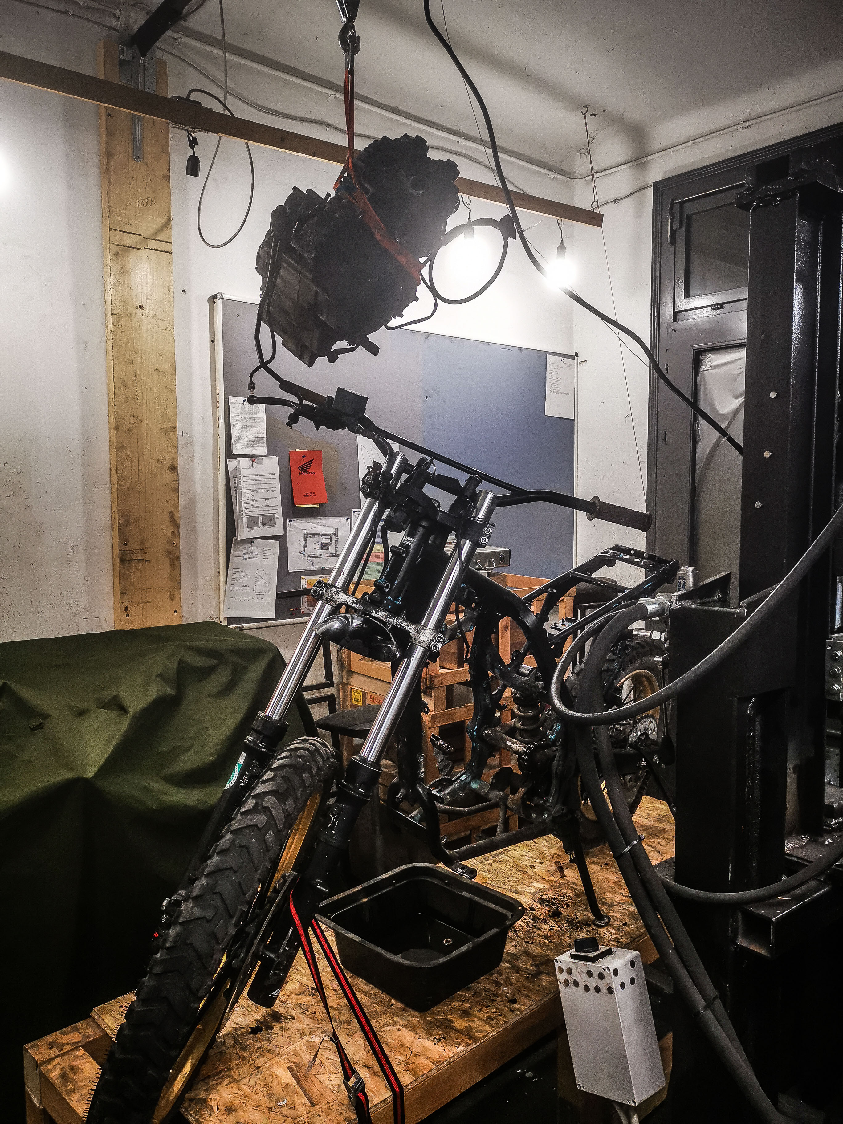 Gabel um 40mm kürzen und durch die obere Brücke stecken, kürzere, progressive Gabelfedern und dickes Öl