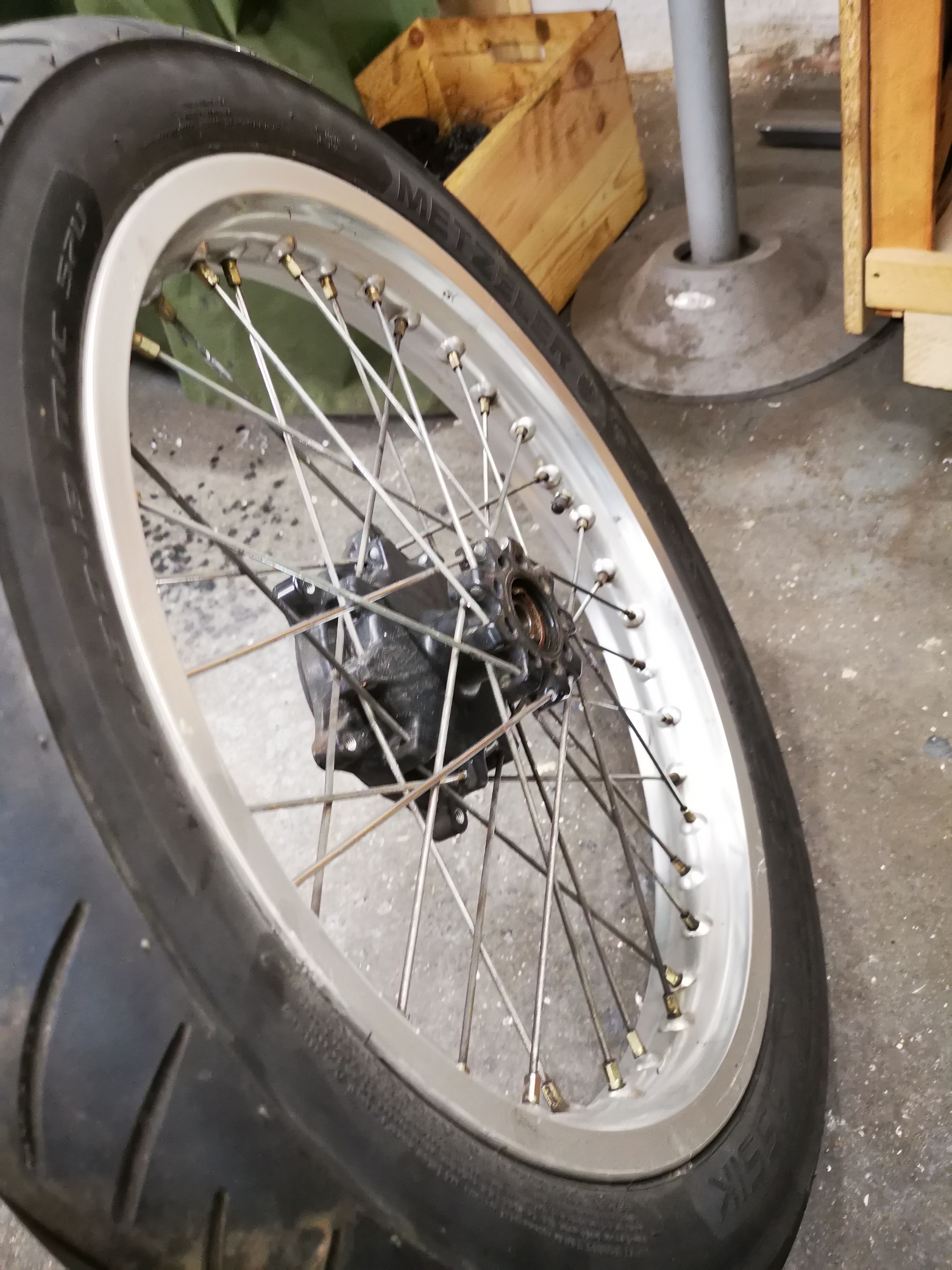 Ich verkaufe ein silbernes 2,15x19 Vorderrad für eine SLR 650, das bei mir in eine Dominator hätte eingebaut werden sollen, hab dann aber einen kompletten Radsatz gefunden, so ist mir dieses Rad übergeblieben!