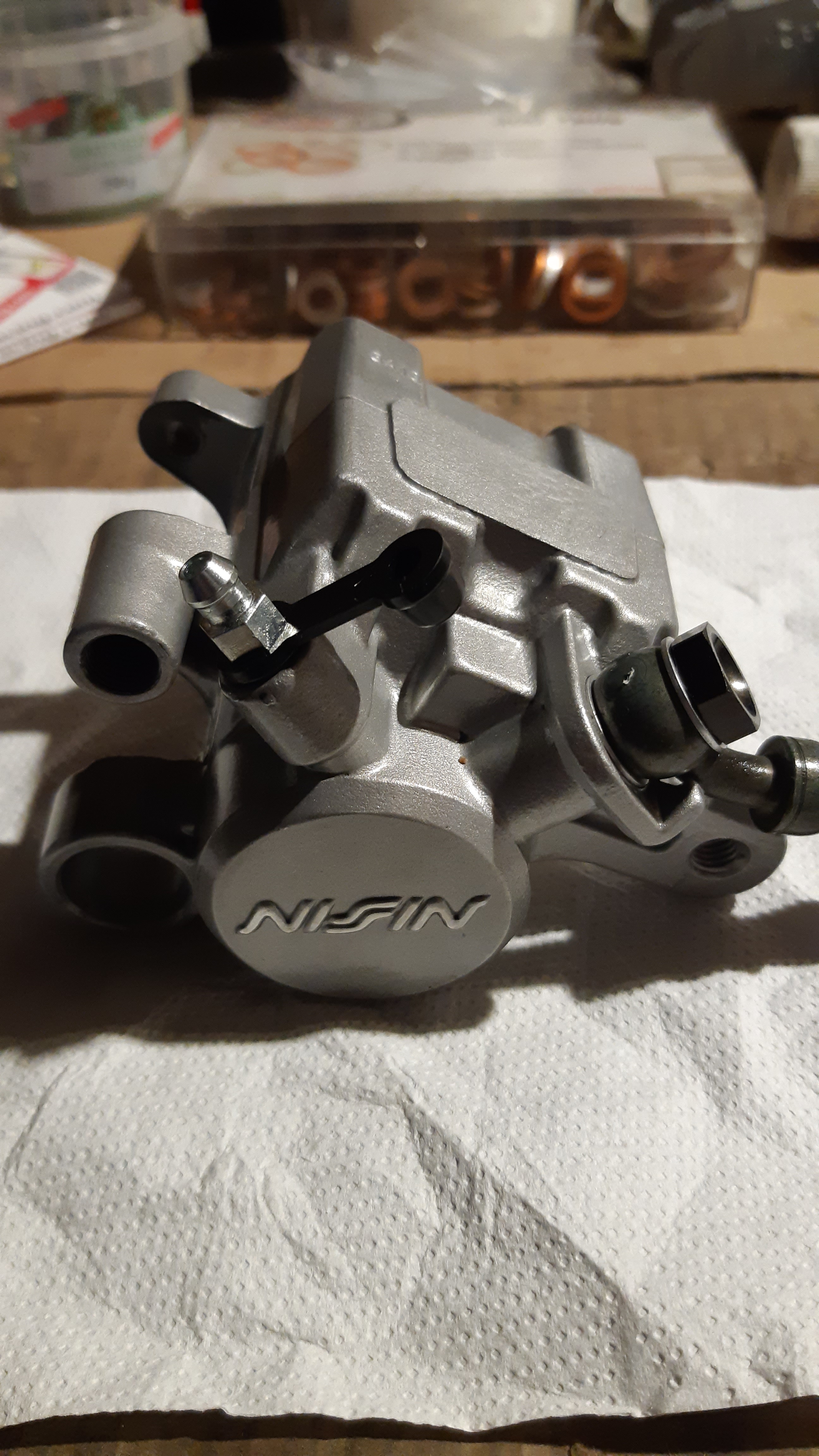 Dann habe ich den Nissin Schriftzug poliert und die Sättel mit 2K Lack eingesprüht.