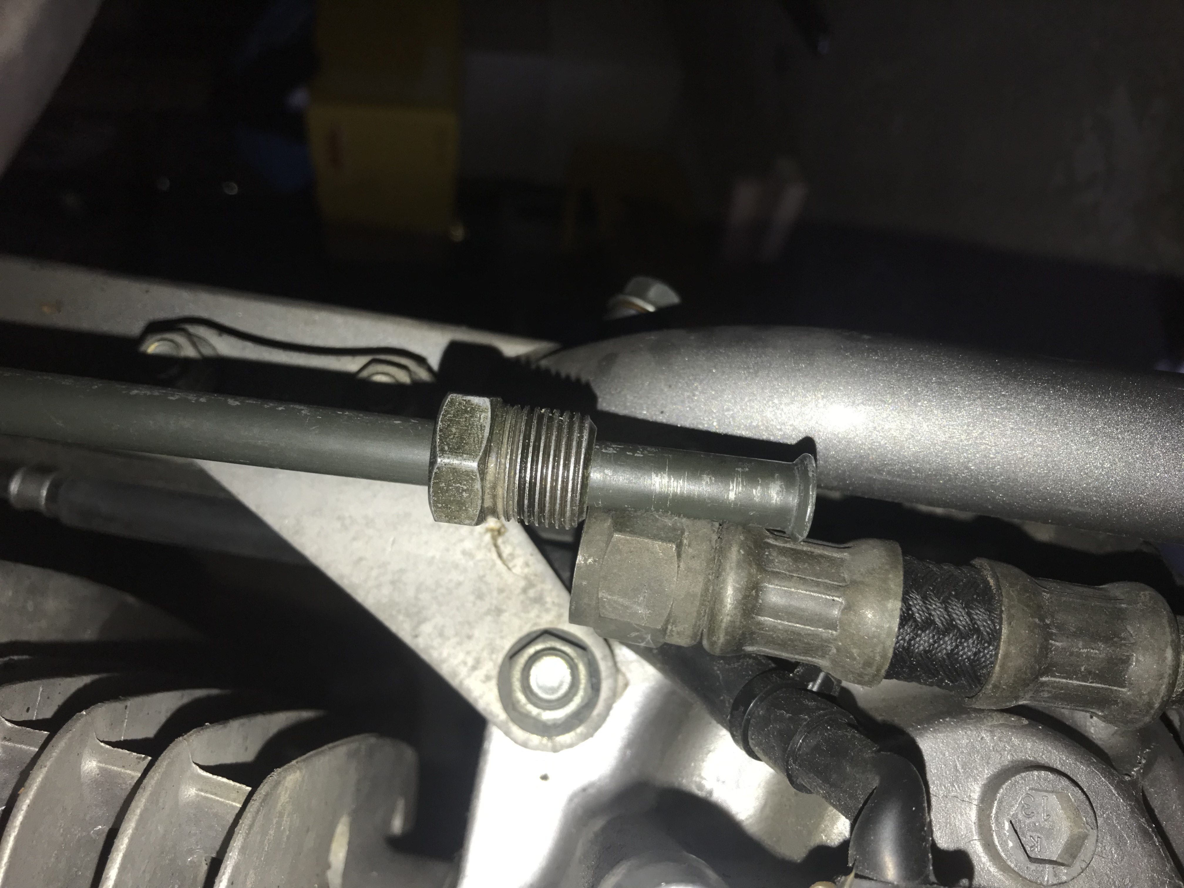 Ich dachte zuerst, dass sich der Anschluss vielleicht gelockert hat und deshalb nicht mehr richtig abdichtend sitzt. Habe den Anschluss deshalb abmontiert und dann wieder sorgsam montiert. Danach war der Ölverlust aber immer noch vorhanden.