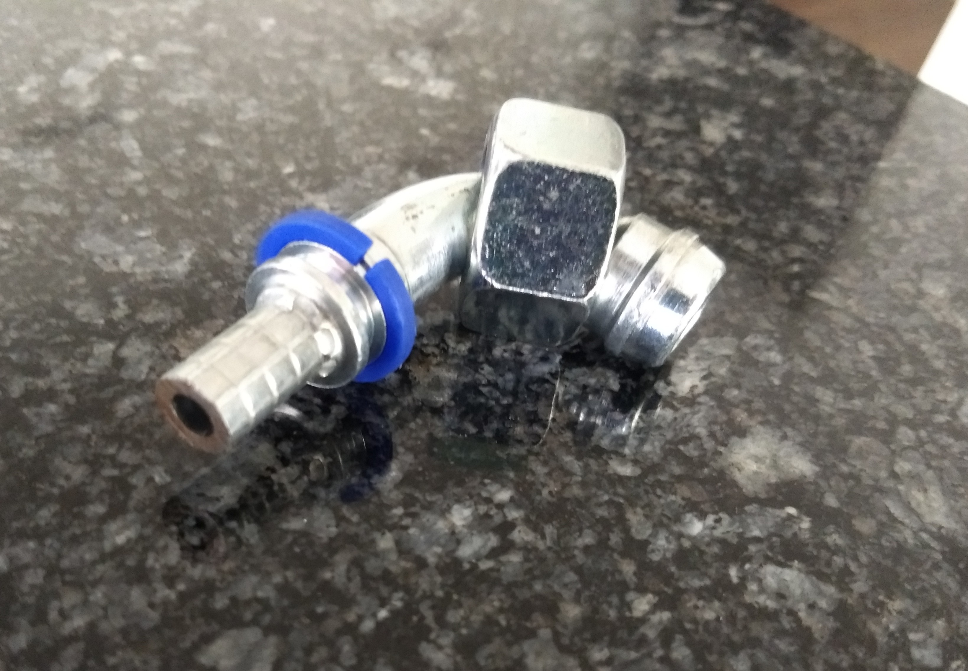 Ich dachte zuerst, dass sich der Anschluss vielleicht gelockert hat und deshalb nicht mehr richtig abdichtend sitzt. Habe den Anschluss deshalb abmontiert und dann wieder sorgsam montiert. Danach war der Ölverlust aber immer noch vorhanden.