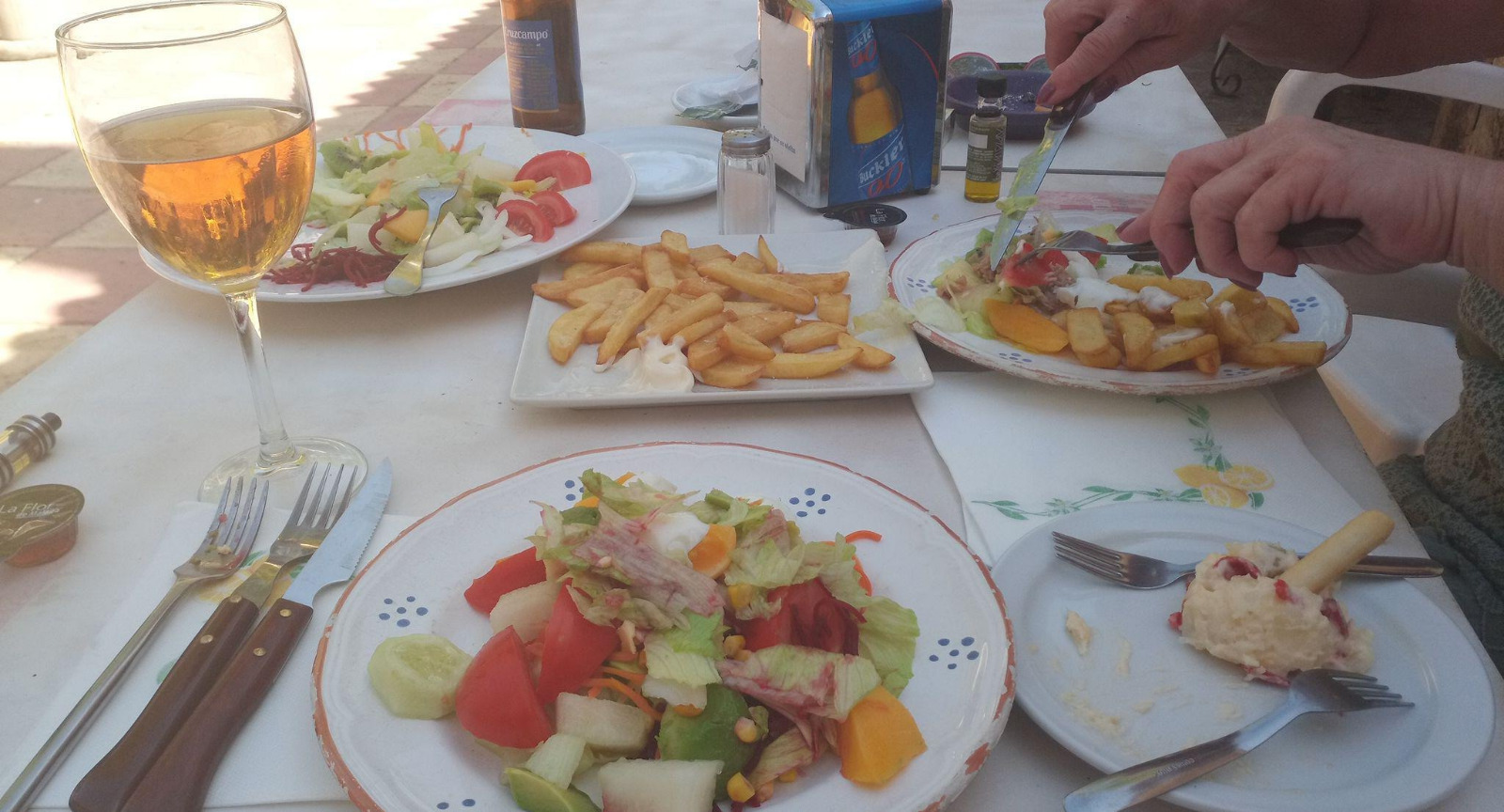 Dann kommen ein paar Tunnel und die Welt sieht ganz anders aus. Und das tatsächlich schlagartig. Bei der 1. Stadt in Andalusien, La Carolina wurde ich dann vom Bus abgeholt und ging es nach Hause in in die Berge der Sierra Morena. Meine vorläufige Unterkunft habe ich bei eine sehr guten Freundin, auch eine Niederländerin. Mein Moped ist gestern Abend auf die Reise gegangen und ist morgen Nachmittag unten in La Carolina. Heute Mittag dann erst mal einen Happen essen bei Las Villas hier im Dorf. Bleibt nur noch zu sagen wie fantastisch ich hier (wieder) empfangen wurde. Ich war jetzt 18 Monate weg und die Leute sprechen mich auf der Straße an wie toll sie es finden dass ich wieder hier und noch besser dass ich bleibe. Das war es mal wieder, Dieser Tage gibt es mehr