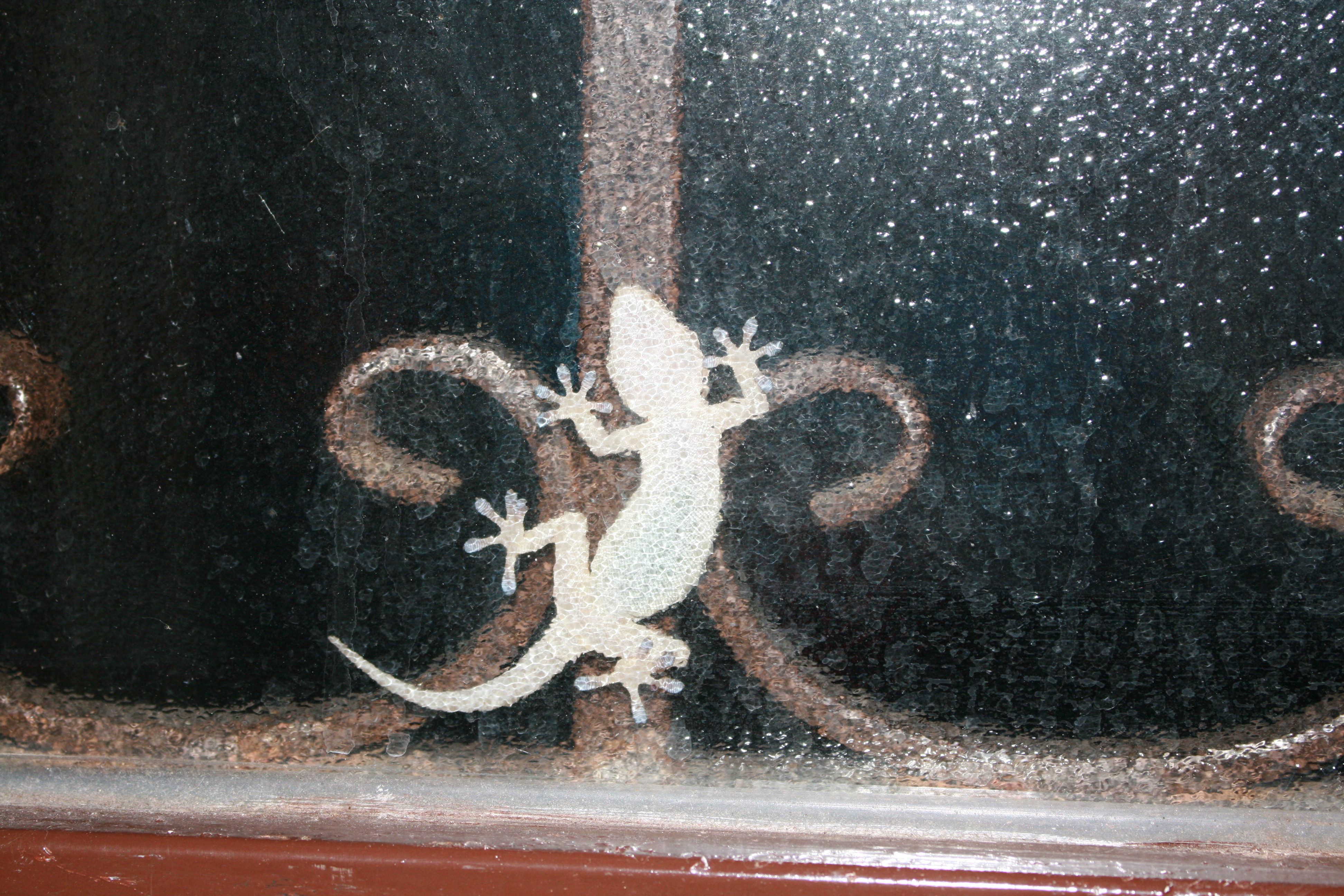 Extensive Tierhaltung nennt man das glaube ich. Der Gecko klebte von außen an der Badezimmertür.