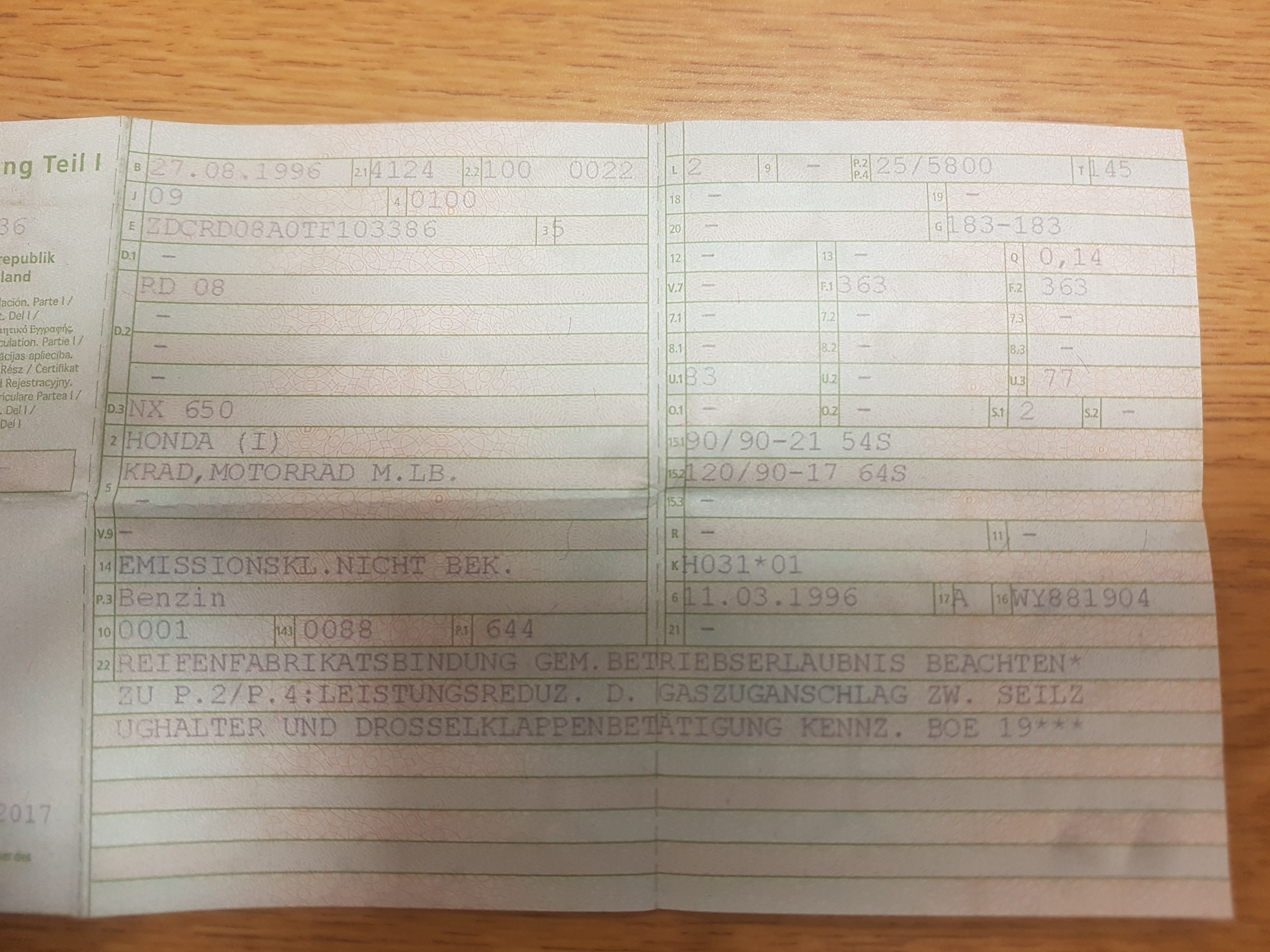 Wenn die Domi ab Werk leistungsreduziert gewesen wäre würde nicht die BOE-Drosselung in den Papieren auftauchen.