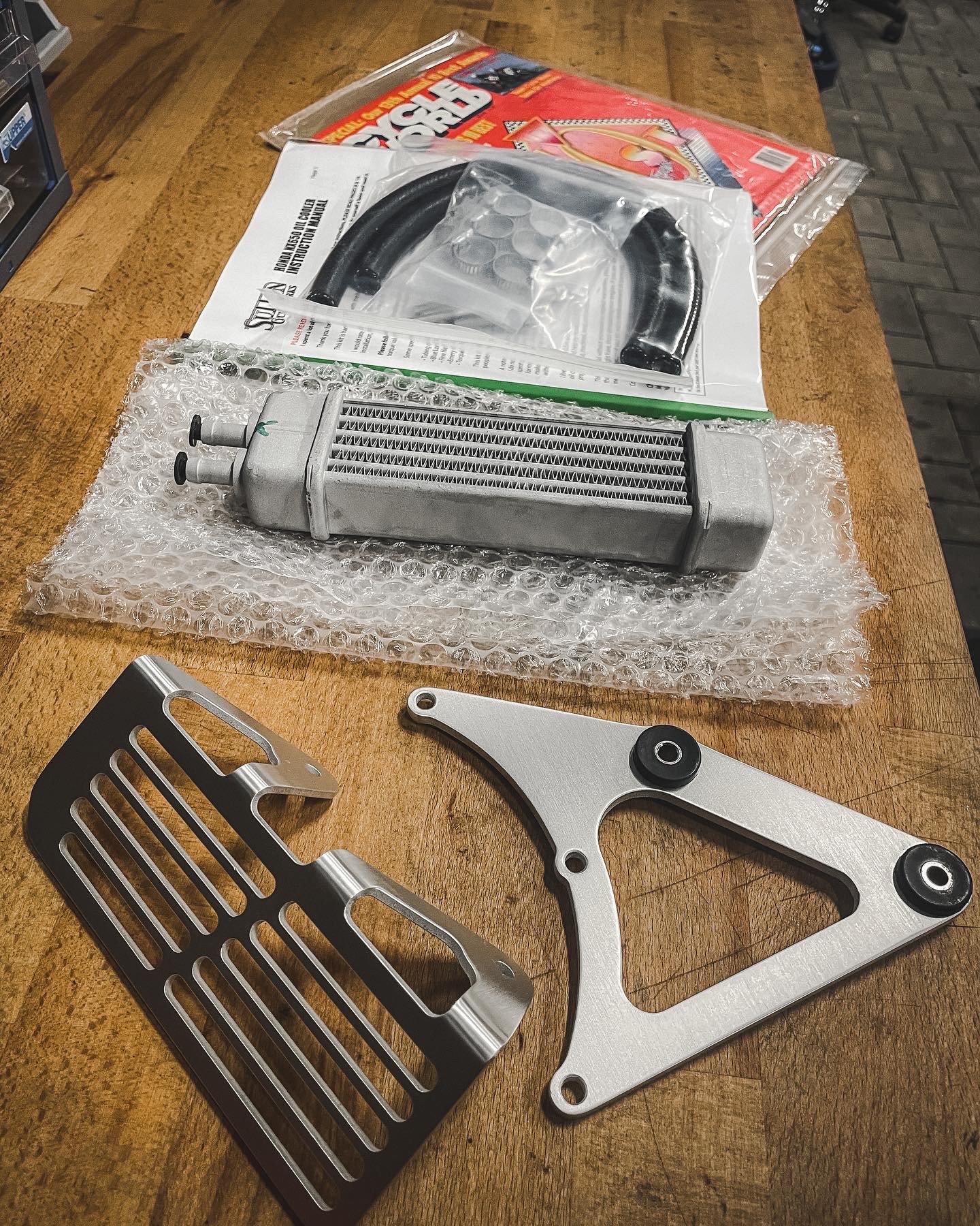 Sutton Cycle Works Öl Kühler. Mark hat mir noch eine Zeitschrift von 1988 mit reingepackt, in der über die Domi berichtet wurde