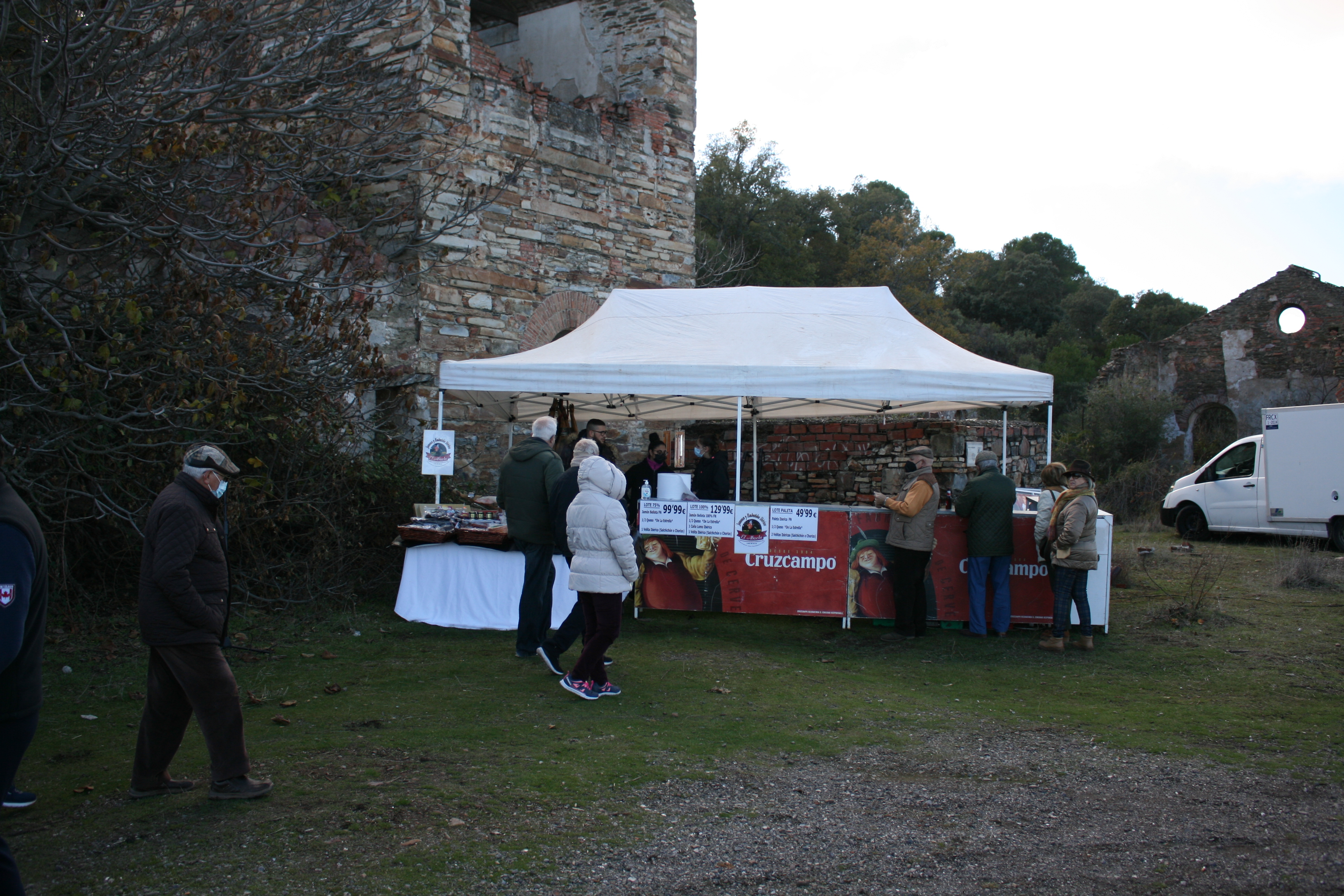 Danach wurde, wie kann es anders, gegessen und getrunken. Es wird dann ein Buffet von mitgebrachten Gerichten und Getränken aufgebaut und alle essen zusammen. Ich hatte zwar auch etwas mitgenommen, aber mir war es einfach zu kalt da oben, ohne Sonne und mit schneidendem Wind bei 7 Grad. Ich bin unverrichteter Dinge wieder abgezogen und habe bei Pipi auf die anderen gewartet. Da Kirche und Kommerz schon immer zusammen gingen, hatte sich auch hier jemand aufgebaut, der Weihnachtspakete und Schinken verkaufte.