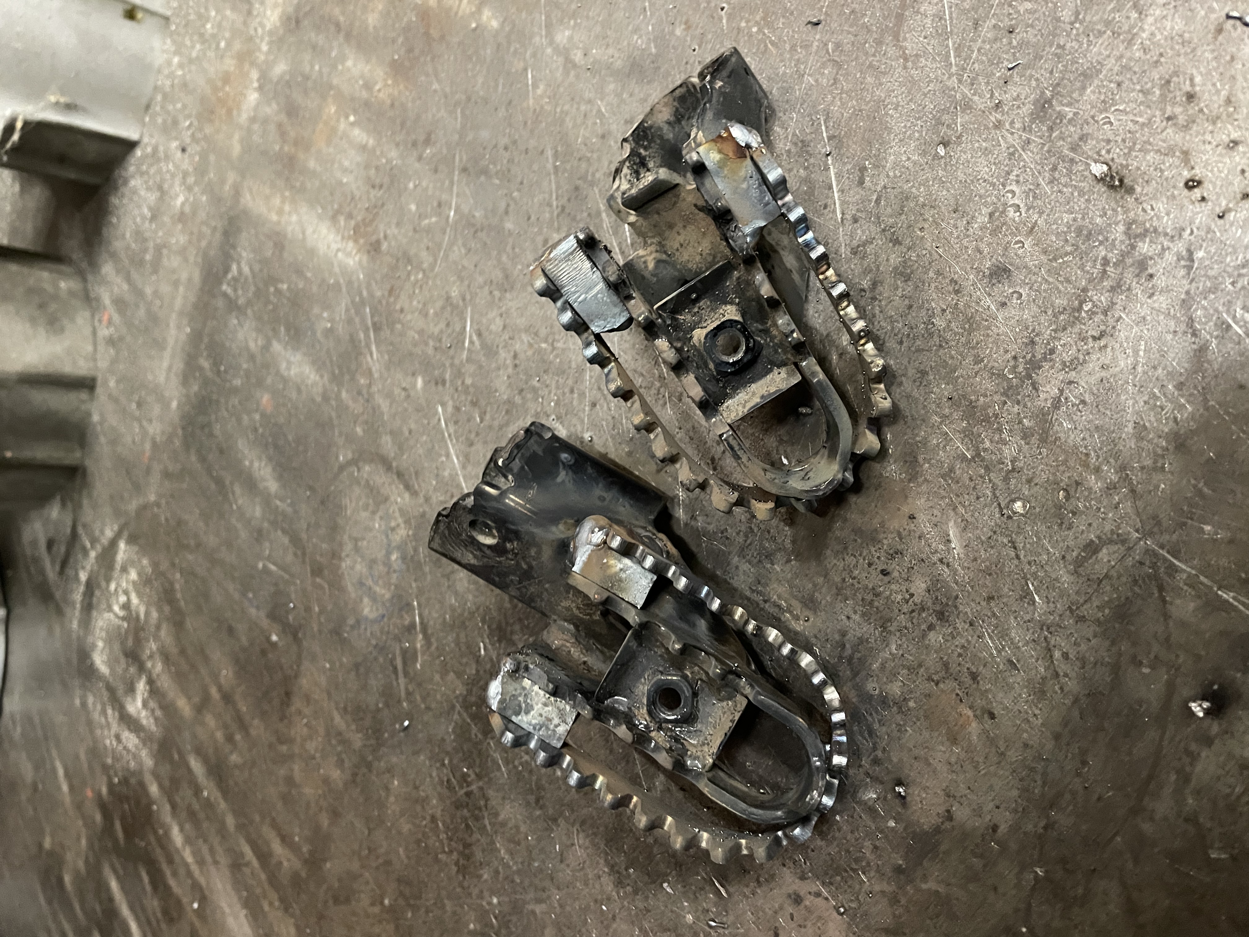 Der Vorteil bei diesen Fußrasten ist, dass die originalen erhalten bleiben und die breiteren nur drum herum geschweißt werden