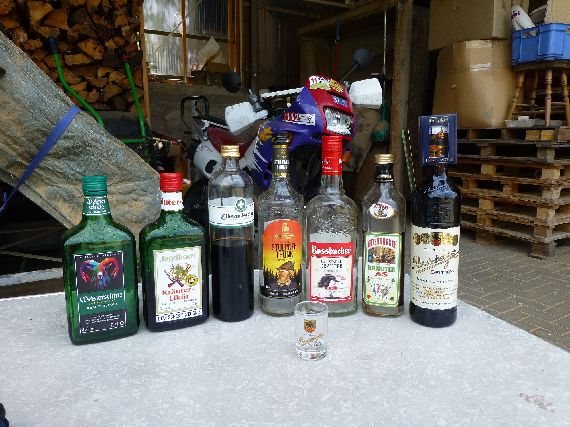 Also, der Elbsansteiner kommt richtig gut, kostet aber auch das doppelte, der Stülpner-Trunk ist richtig schön bitter, Meisterschütz, Jagdhorn und Kräuter-As sind sehr süffig, weil gut süß, und der Rosbacher: bääähhhhh. Sowas hat mein Vater früher als Kommodenlack bezeichnet. Ich habe die Flasche leer gekriegt, weiß aber nicht mehr, wie.......