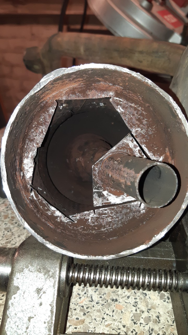 Die hintere Schweissnaht legt nahe, dass hier vermutlich die letzte Trennwand vor dem Auslass