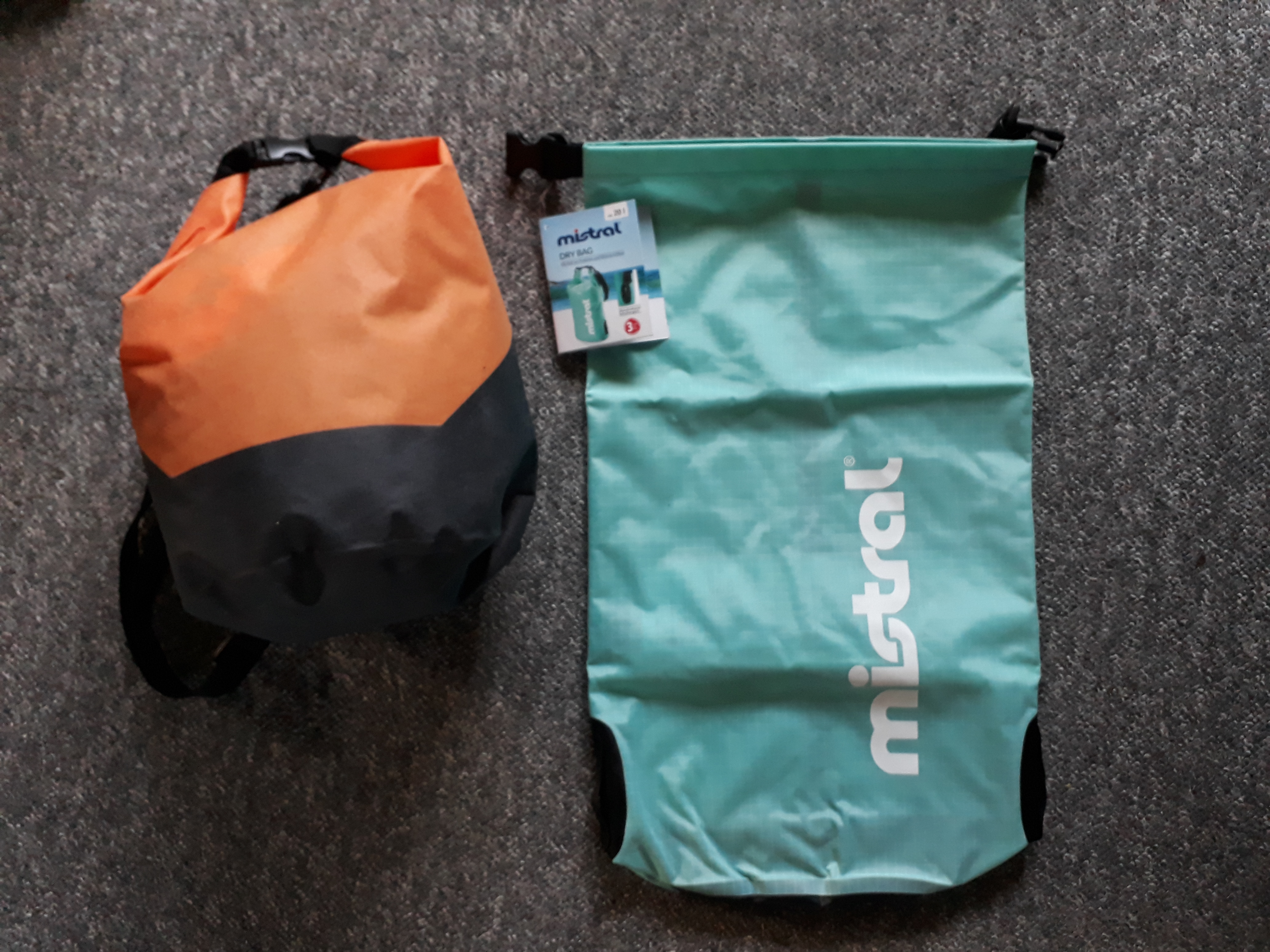 In der orangefarbenen (10L) ist mein Regenzeug. Die türkisfarbene hat 20L.
