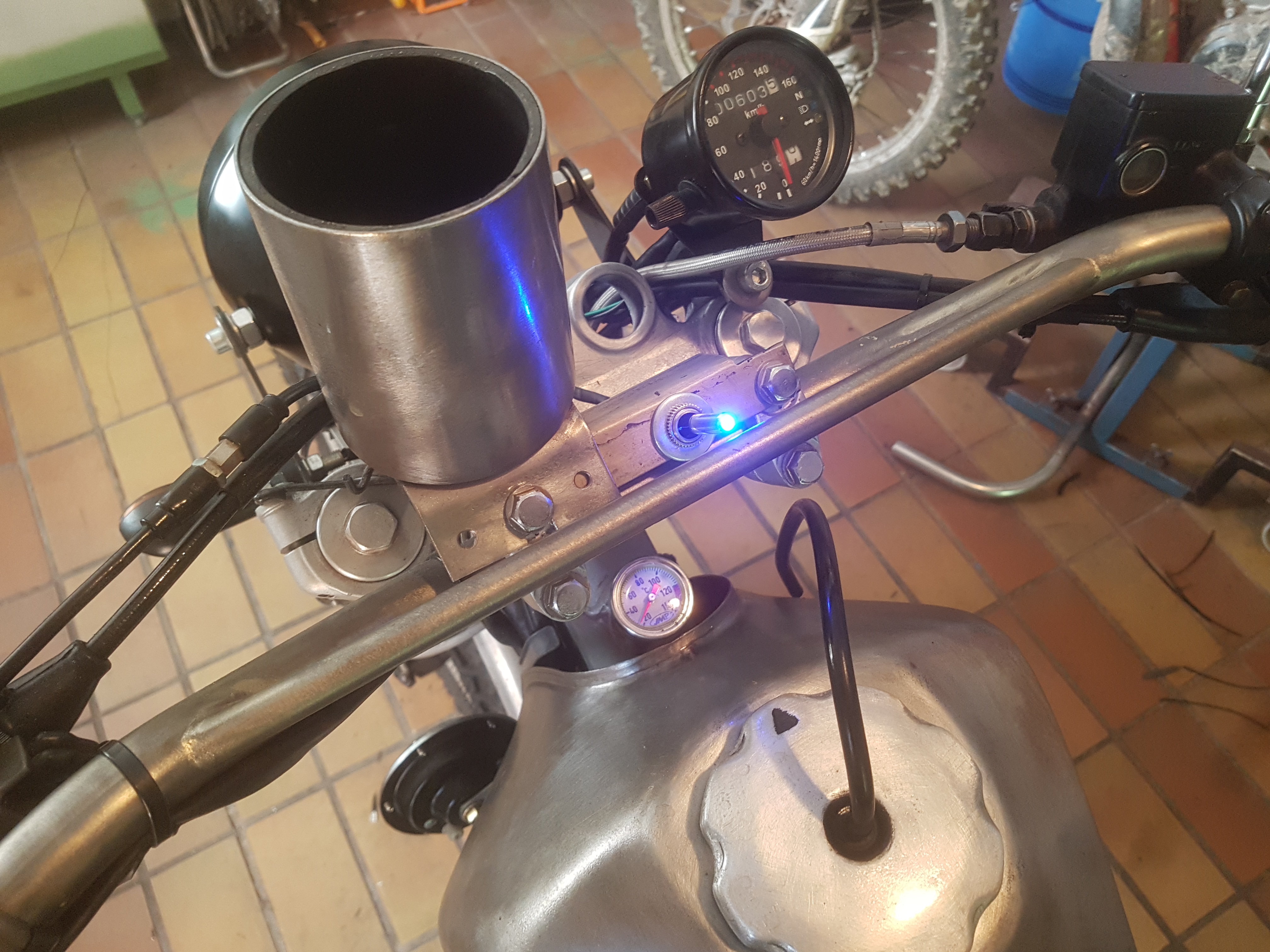 So männers.musste leider nochmal alles auseinanderbauen da ich irgendwo nen Masse Fehler hatte. Hat mir andauern die Sicherung rausgehauen. Jetzt geht's wieder. Im diesem Zuge habe ich dann direkt Zündschloss und Anlasser an die Seite verlegt.kill Schalter dann über den lenker mit LED kippschalter .Gefällt mir gut. Masse Problem ist somit auch gelöst.