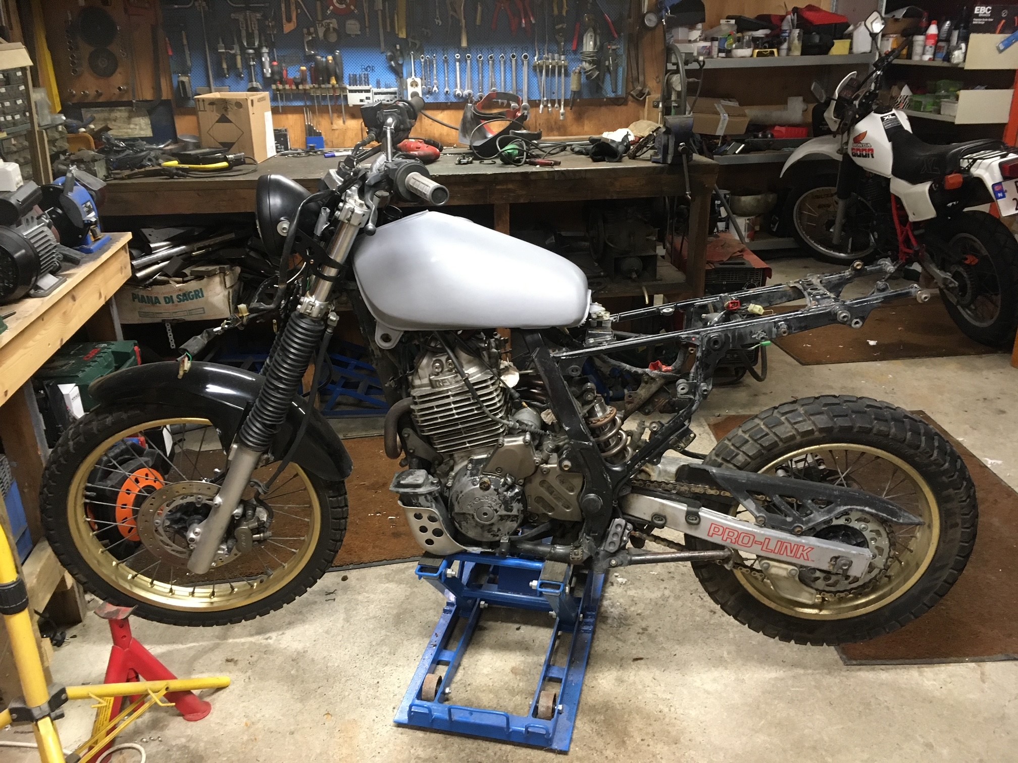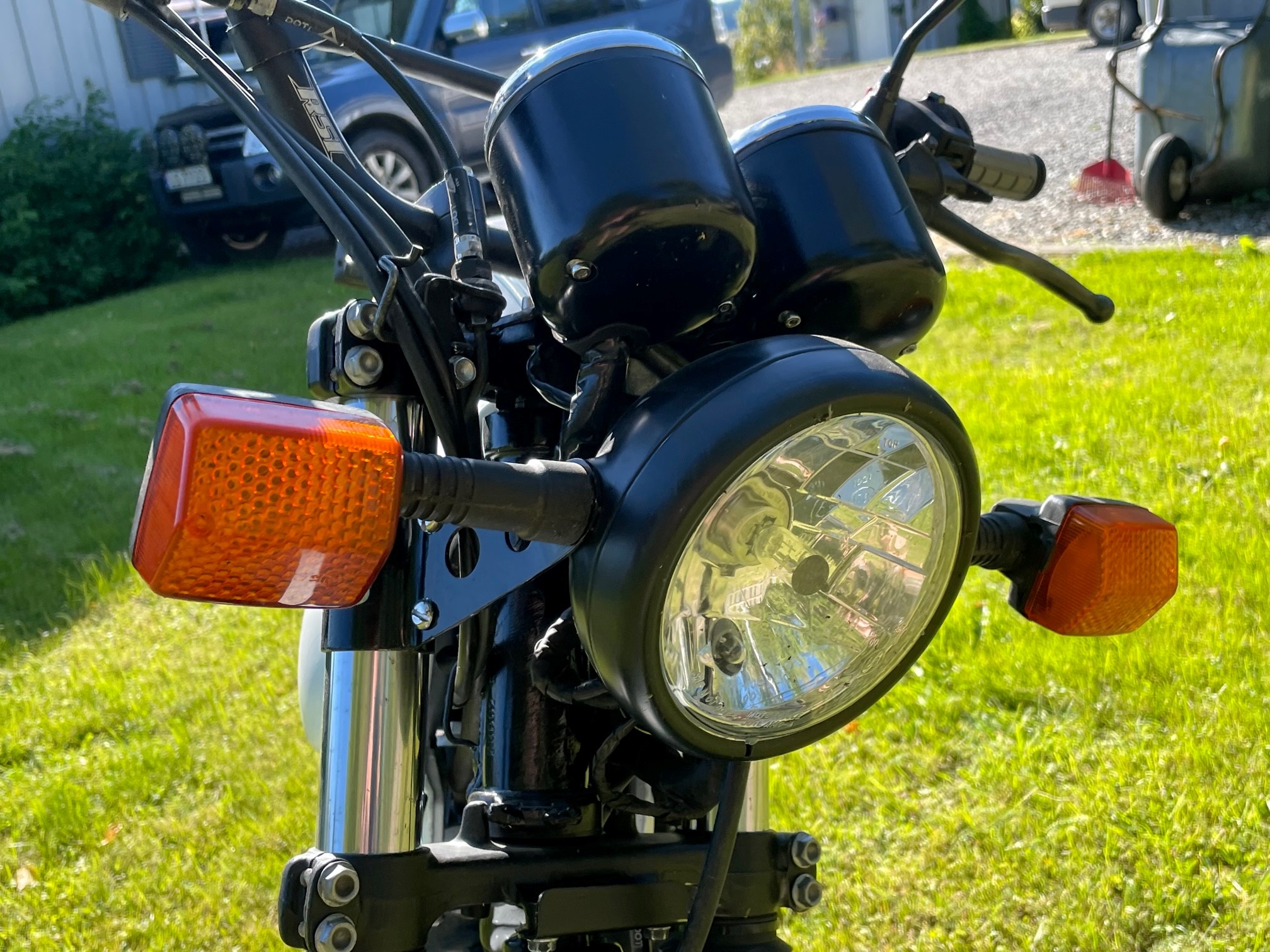 Sorry for late answer. I did not figure out how to answer. Yes I am from Norway, and the bike is registered ok. Rear fender is modified from an old XT500. Fueltank bought from India and modified to fit the frame. Instruments from GB500. Seat is original Domi, but modified and made slimmer to fit my bad hips. The original Domi RD2 was to big and wide for my hips so I had to do something with the size. I has always liked the classic style of the XT500, so i tried to make it something like that.