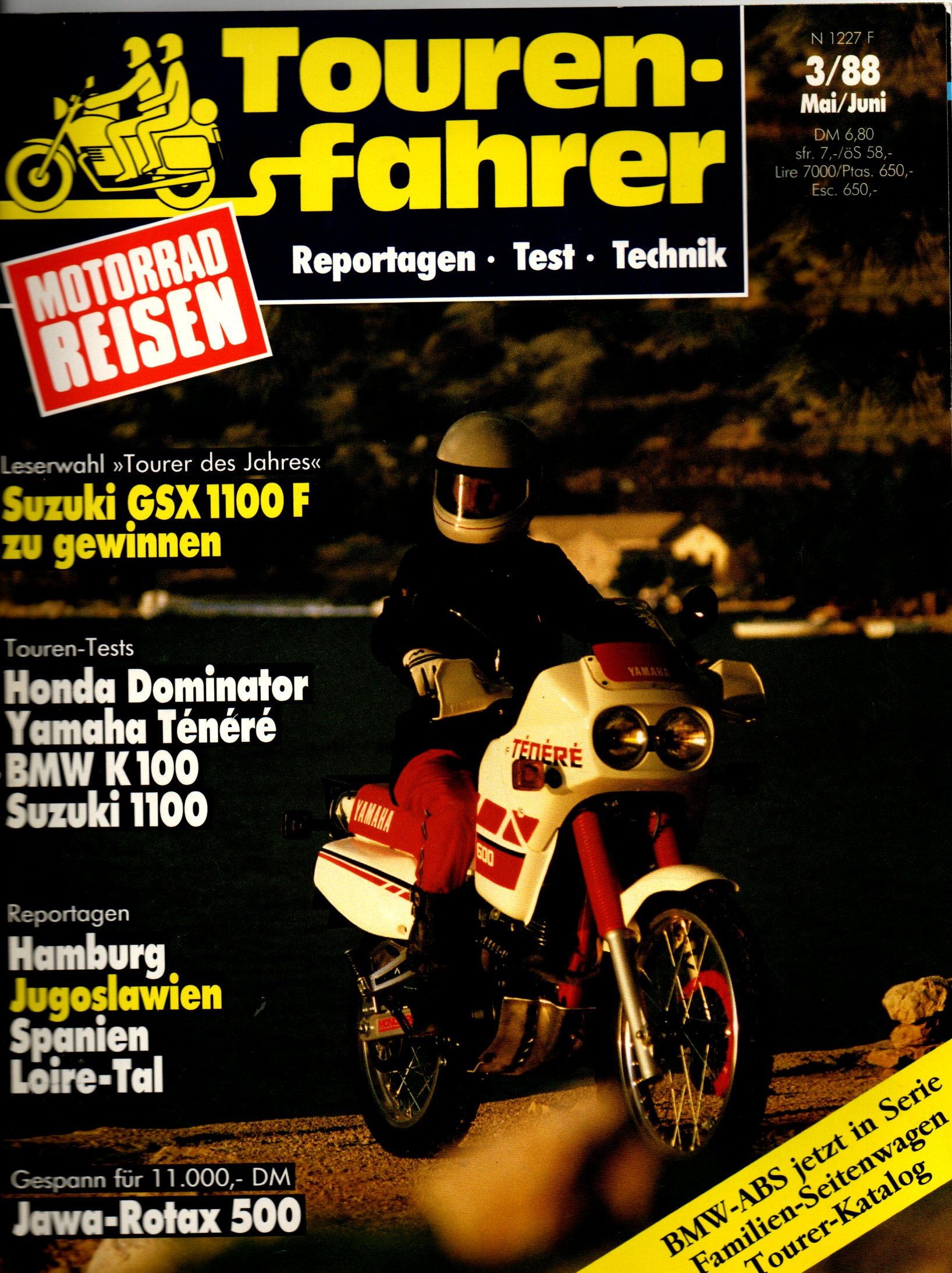 Tourenfahrer Heft 3/1988 mit einem Touren-Test der Dominator im direkten Vergleich zur Yamaha Tenere.