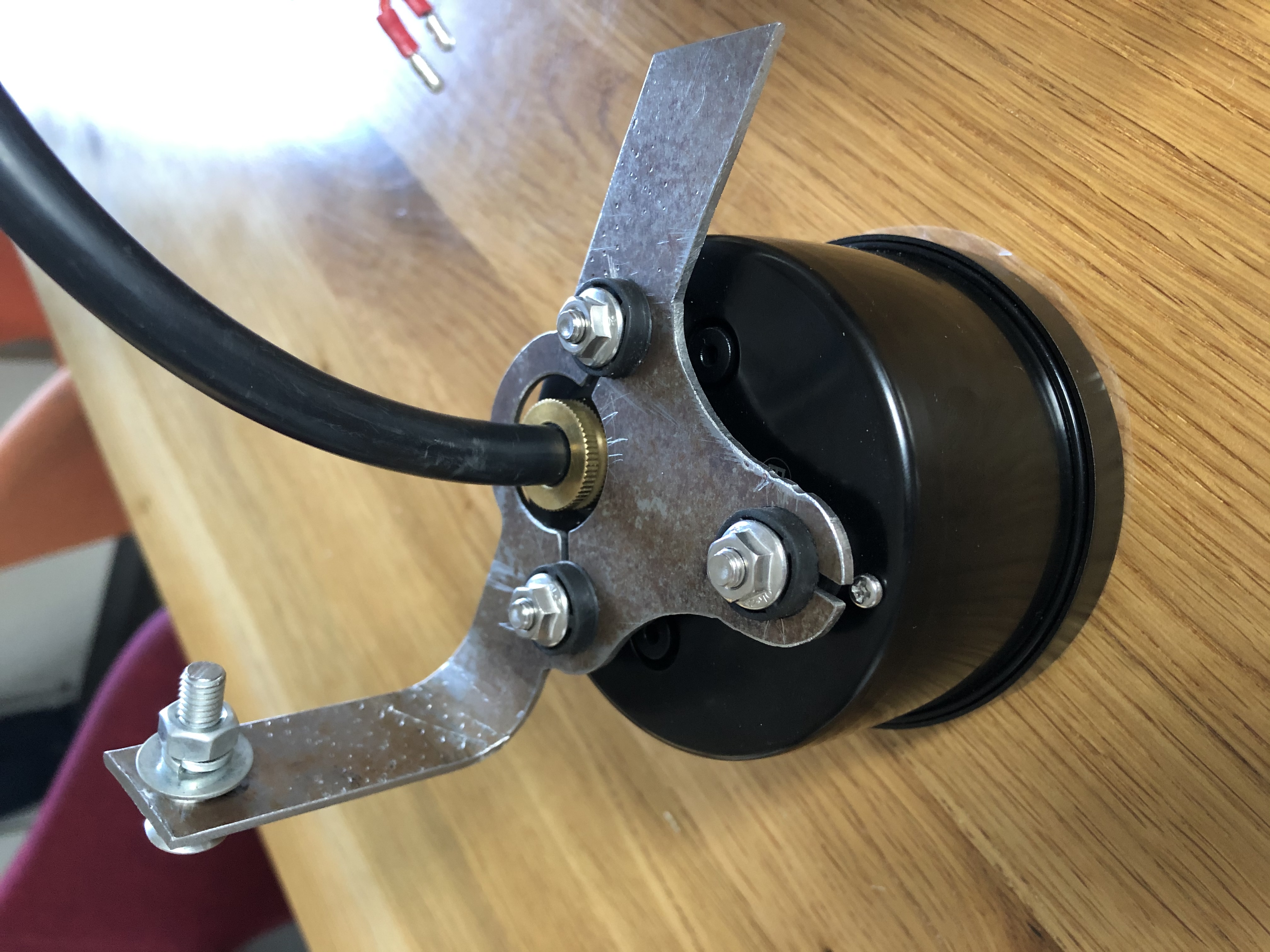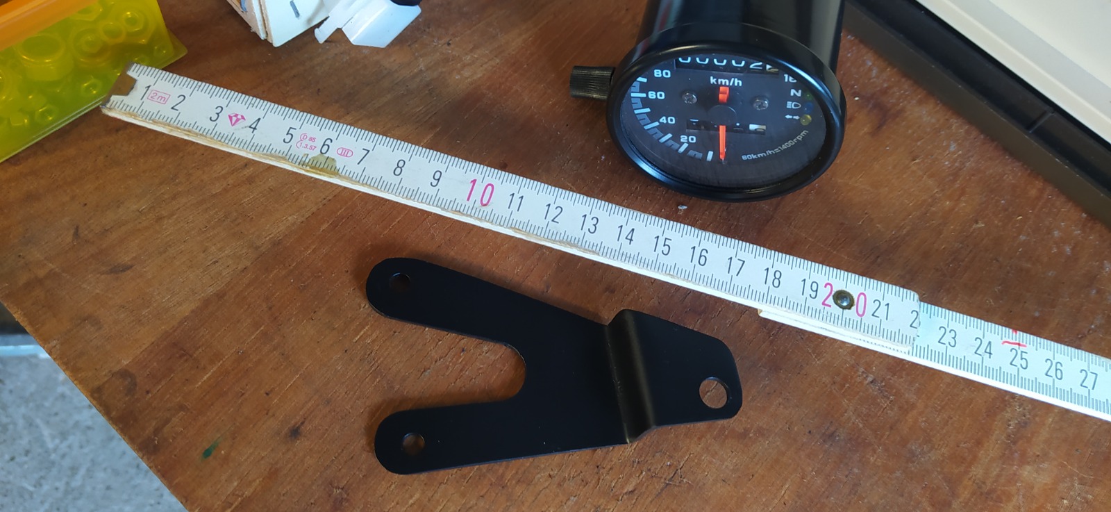 Ich habe einfach die Lenker Befestigung unten genommen. Einfach anstatt der Mutter eine längere genommen und das überstehende Gewinde benutzt. Eine Schraube sollte für einen Tacho reichen.