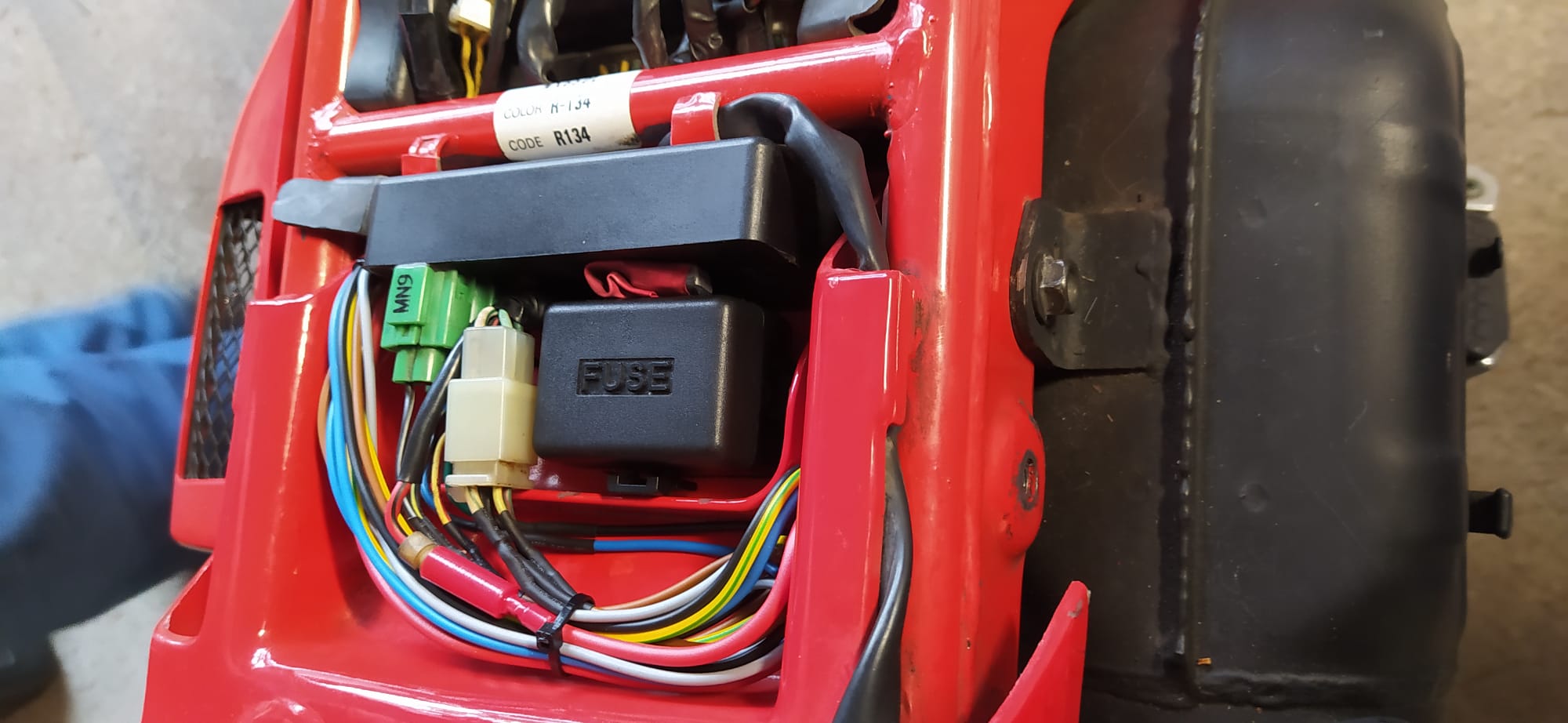 Ich habe jetzt den CDI und den Sicherungskasten nach hinten gelegt, wie von mono650 gezeigt.