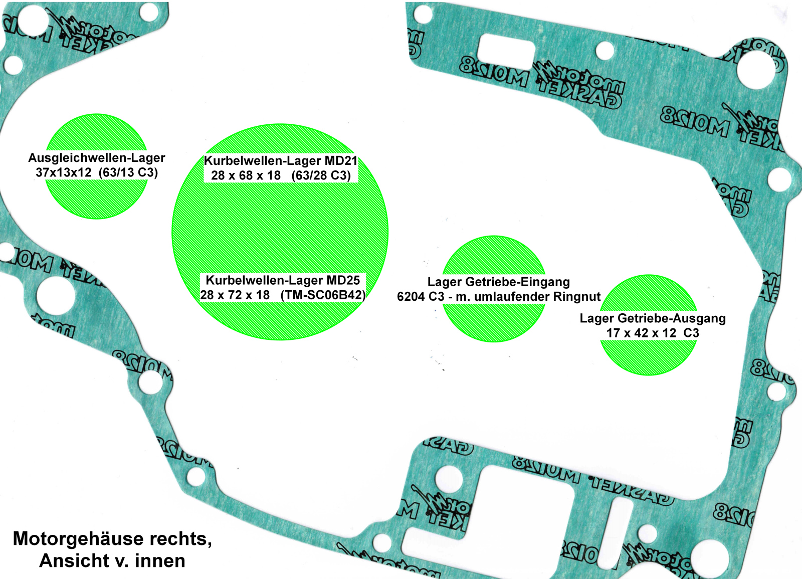 Hier noch etwas - durchaus 'Wertvolles' - sollte man jemals einen NiXen-Motor aufmachen müssen - ein Schema, welche Lager sich an welcher Stelle befinden - das gibt es nicht mal im WHB.
