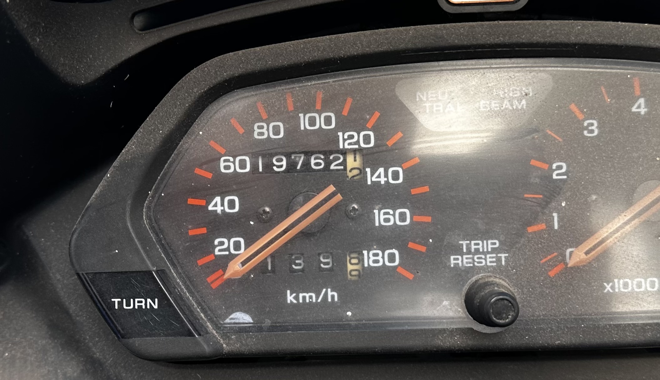 die Domi steht seit Mitte 2009. Der letzte TÜV wurde 03/2009 gemacht, hier hatte die Domi 19.262 km auf der Uhr. Danach wurde Sie nur 500km bewegt und stand seit Mitte 2009 (nun 14 Jahre) in einer halbwegs trockenen Halle: