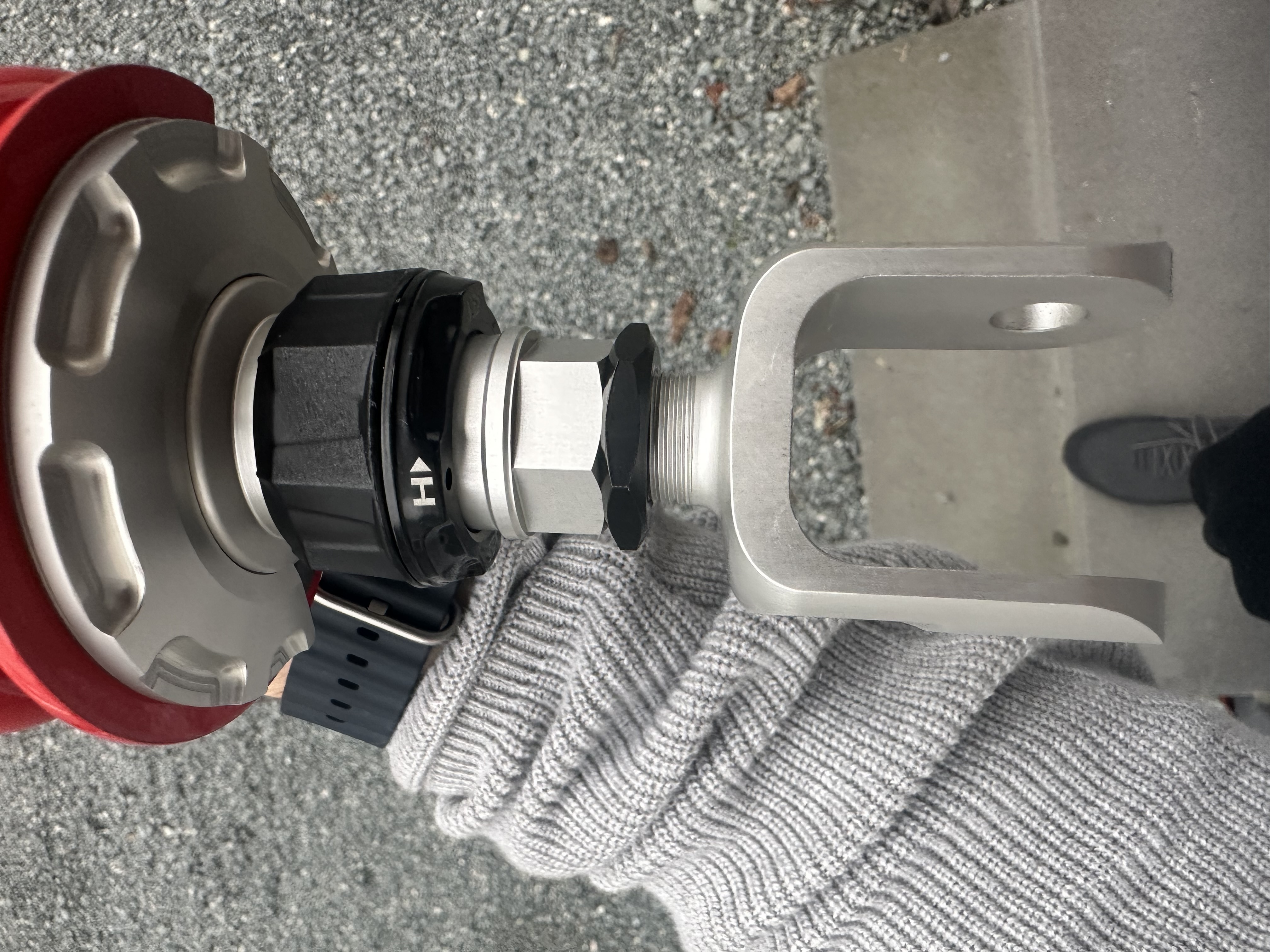 Ob und was für ein Alu die Mutter ist kann ich nicht wirklich sagen. Wird schon seinen Dienst tun. Wichtig ist es grundsätzlich das Gewinde durch zu viel Dreck zu schützen, dann hält das. Ich finde die Verstellung der Mutter gut gelöst mit den Bohrungen. Hiermit kann man mittels einem mitgelieferten Stab die Mutter ohne Kratzer/Spuren bewegen. Die Mutter wird dann mit Madenschraube gesichert. Diese drückt anscheinend direkt auf das Gewinde.