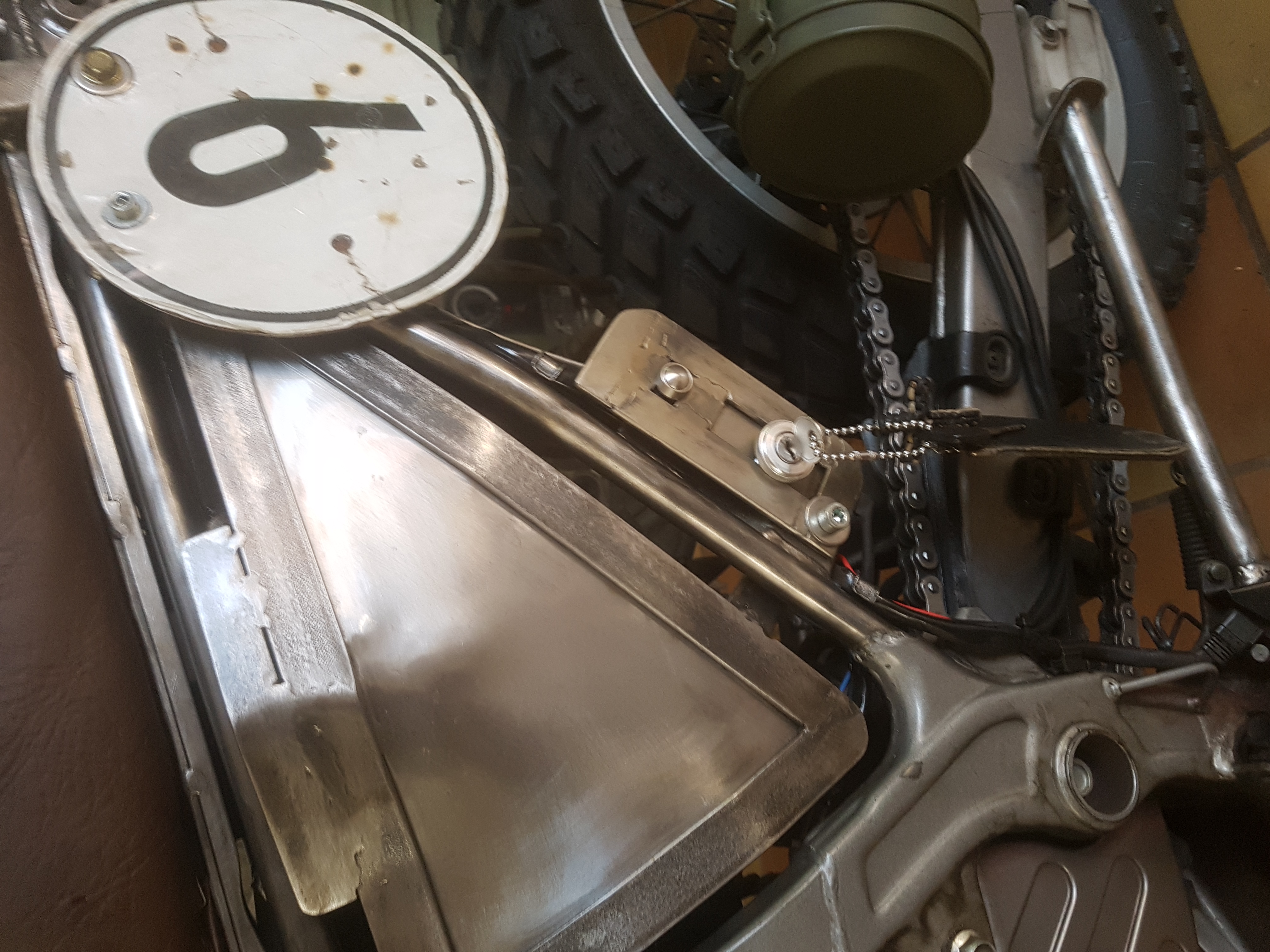 -für photos weiterer Heck schmutz Fänger da Heck zu kurz laut STVO. Ähnlich wie bei einer BMW denke ich, muss ich einen provisorischen spritz Schutz, welcher an der schwinge befestigt, bauen damit er das mopped photographieren kann für seine Unterlagen.