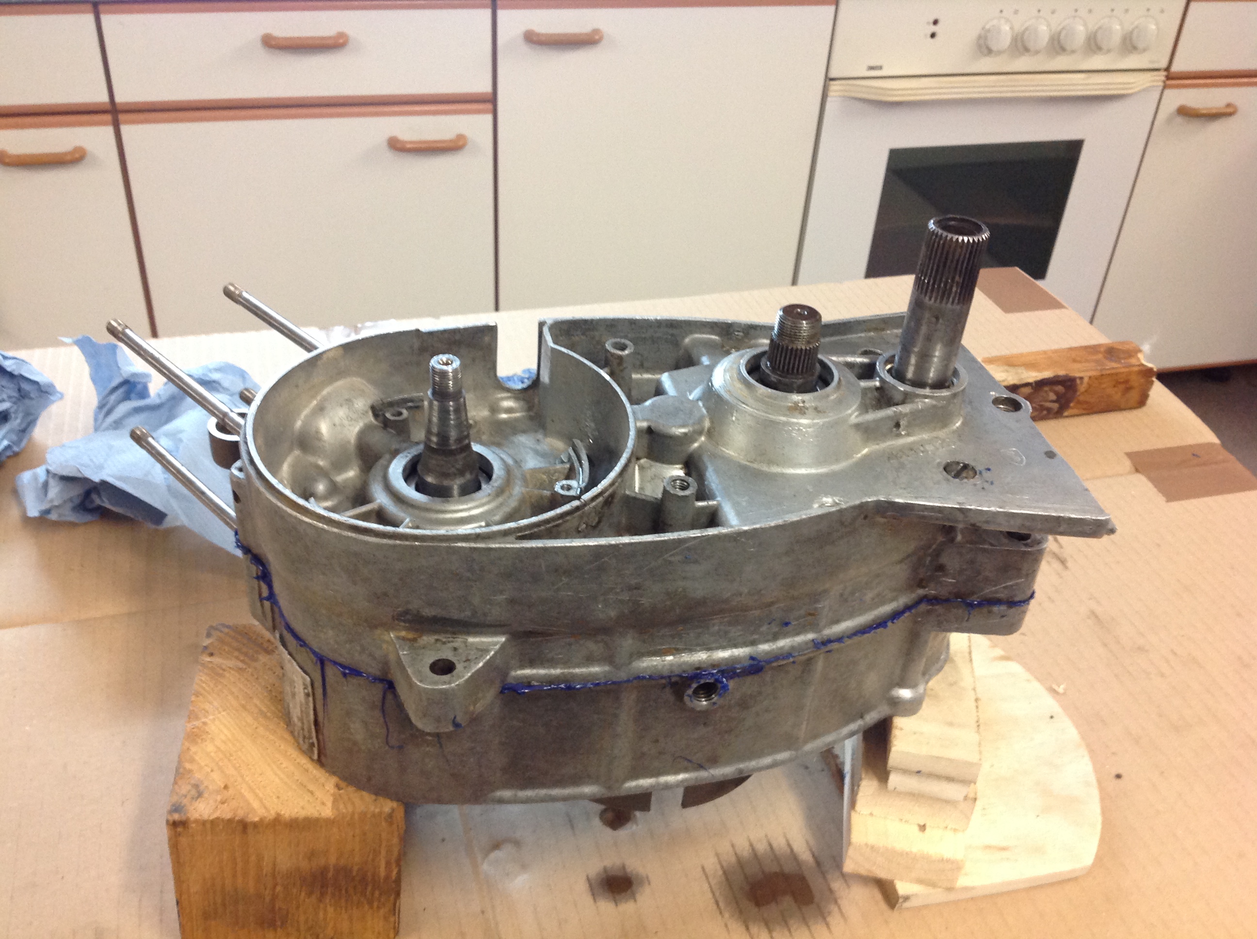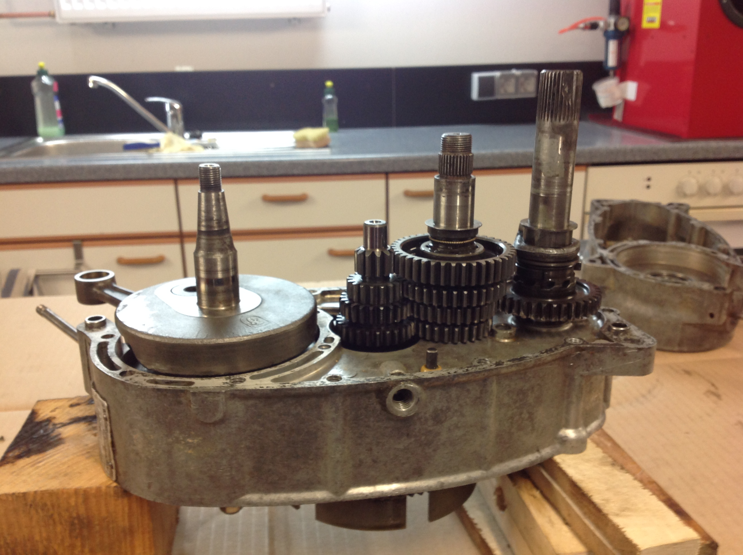 Der Motor ist zusammen und , das Wichtigste, das Getriebe läßt sich schalten