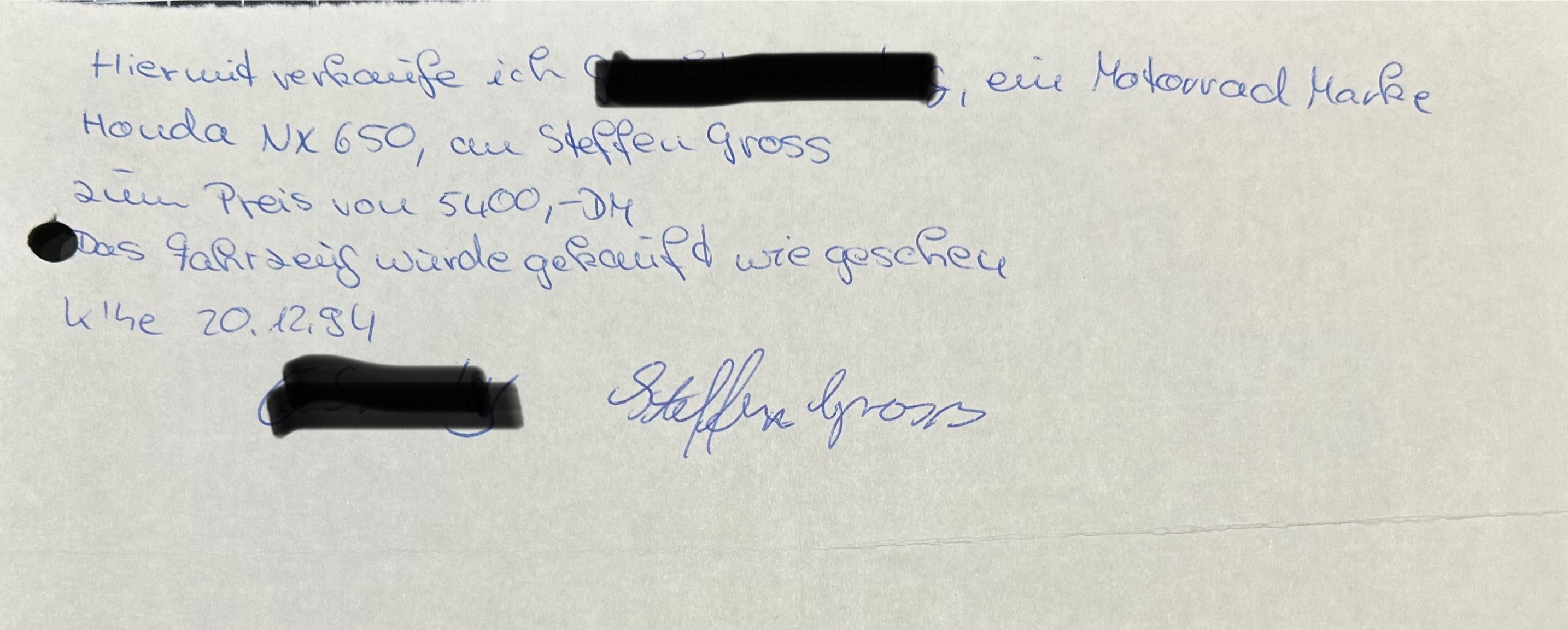 Falls der Datenschutz es auch nach 30 Jahren noch erforderlich macht, habe ich vorsorglich den Verkäufer und seine Unterschrift geschwärzt. :lol: