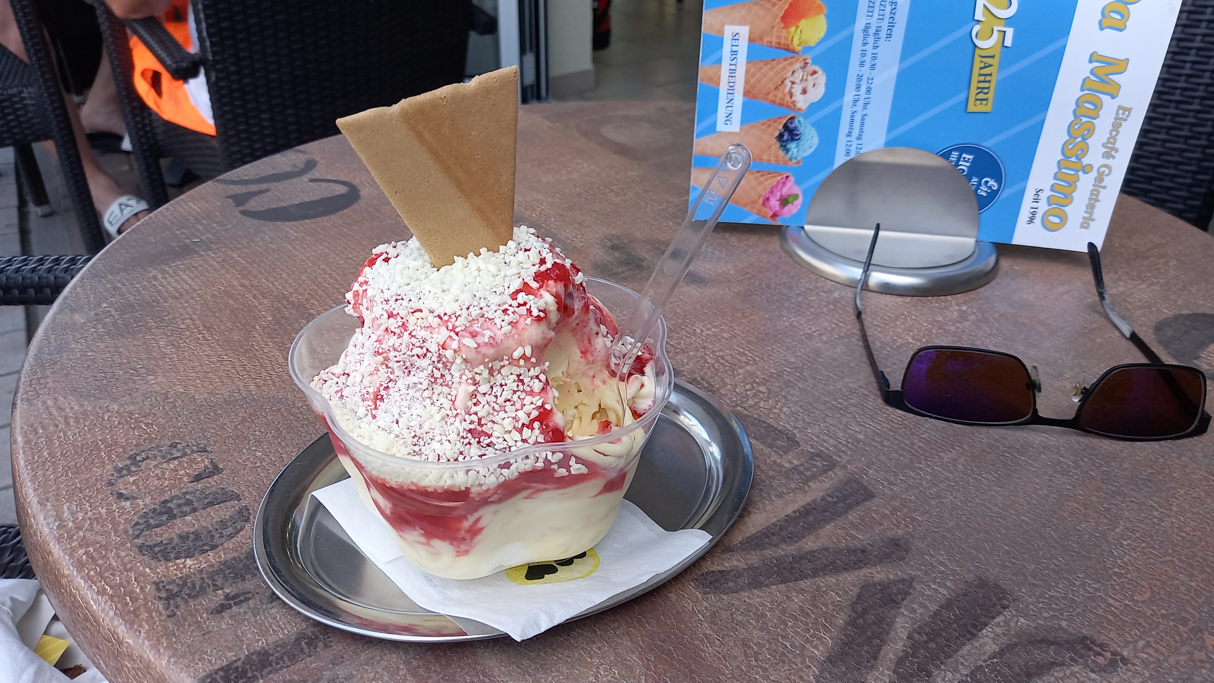 auch ich bin gestern mit einem kurzen Abstecher zu Susanna entspannt zuhause angekommen. Heimfahrwetter war mega. Moped absatteln, natürlich putzen wegen Regen am Vortag, Kette säubern, schmieren und spannen. Dann Moped zur Mietgarage gefahren und mir ein Spaghetti Eis gegönnt.