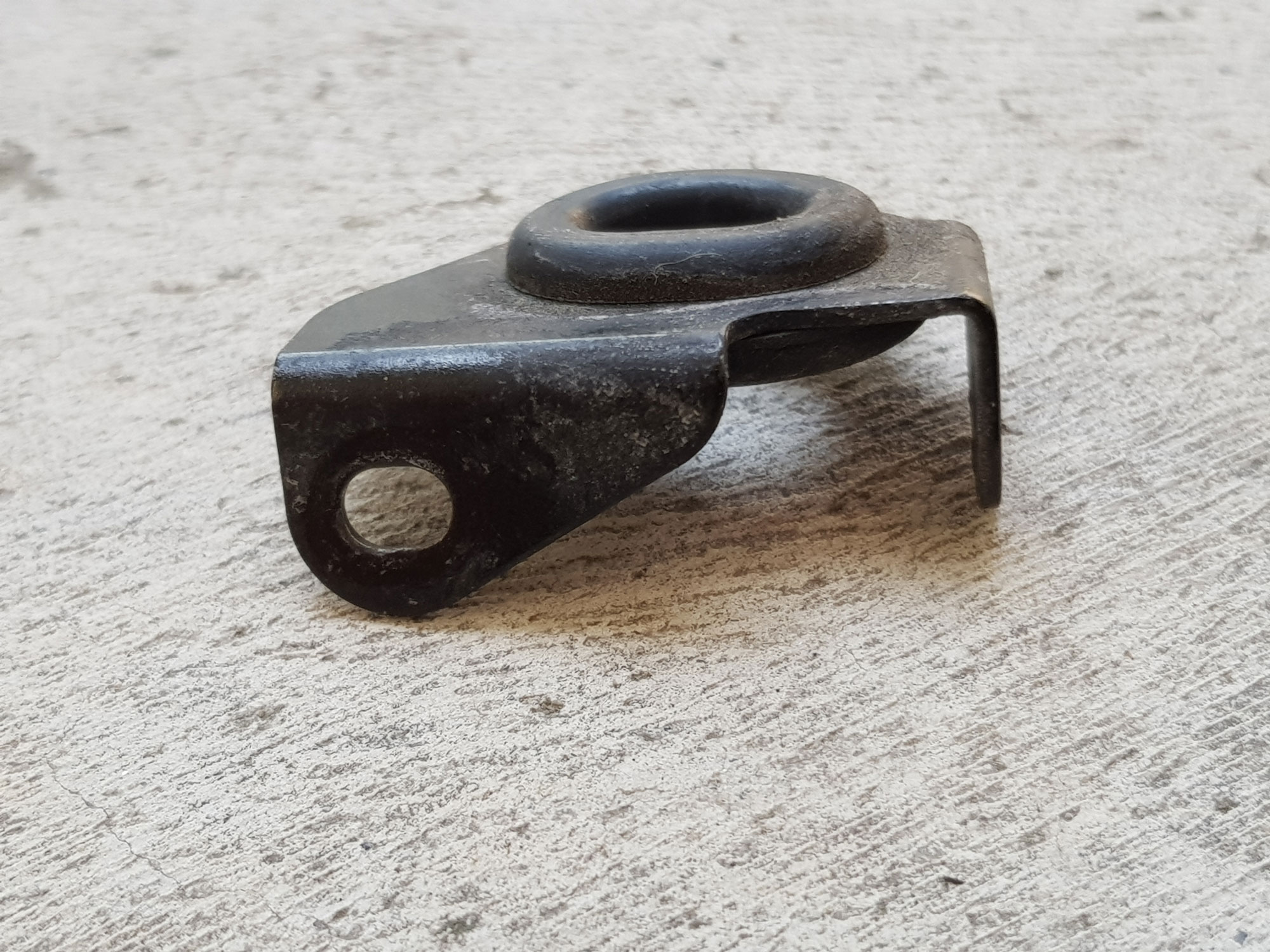 - einen Blechwinkel mit halboffener Aufnahme um Ihn seitwärts auf die Gummirolle zu "rasten"