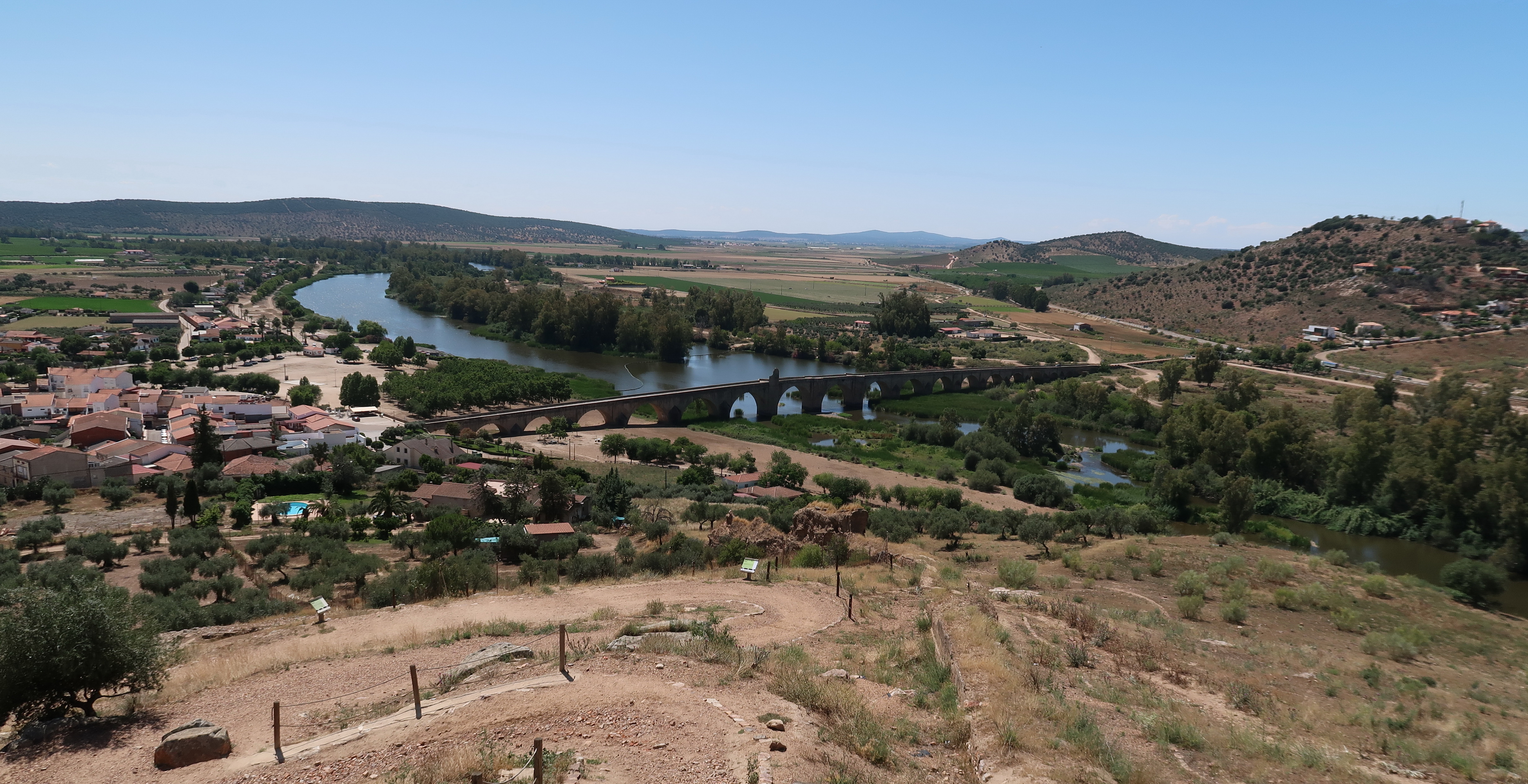 Vom Burgberg aus betrachte ich noch die römische Brücke, über die noch bis vor einigen Jahren der Straßenverkehr verlief, bevor die Ortsumgehung gebaut wurde. Dann geht es in die benachbarte Stadt Don Benito.