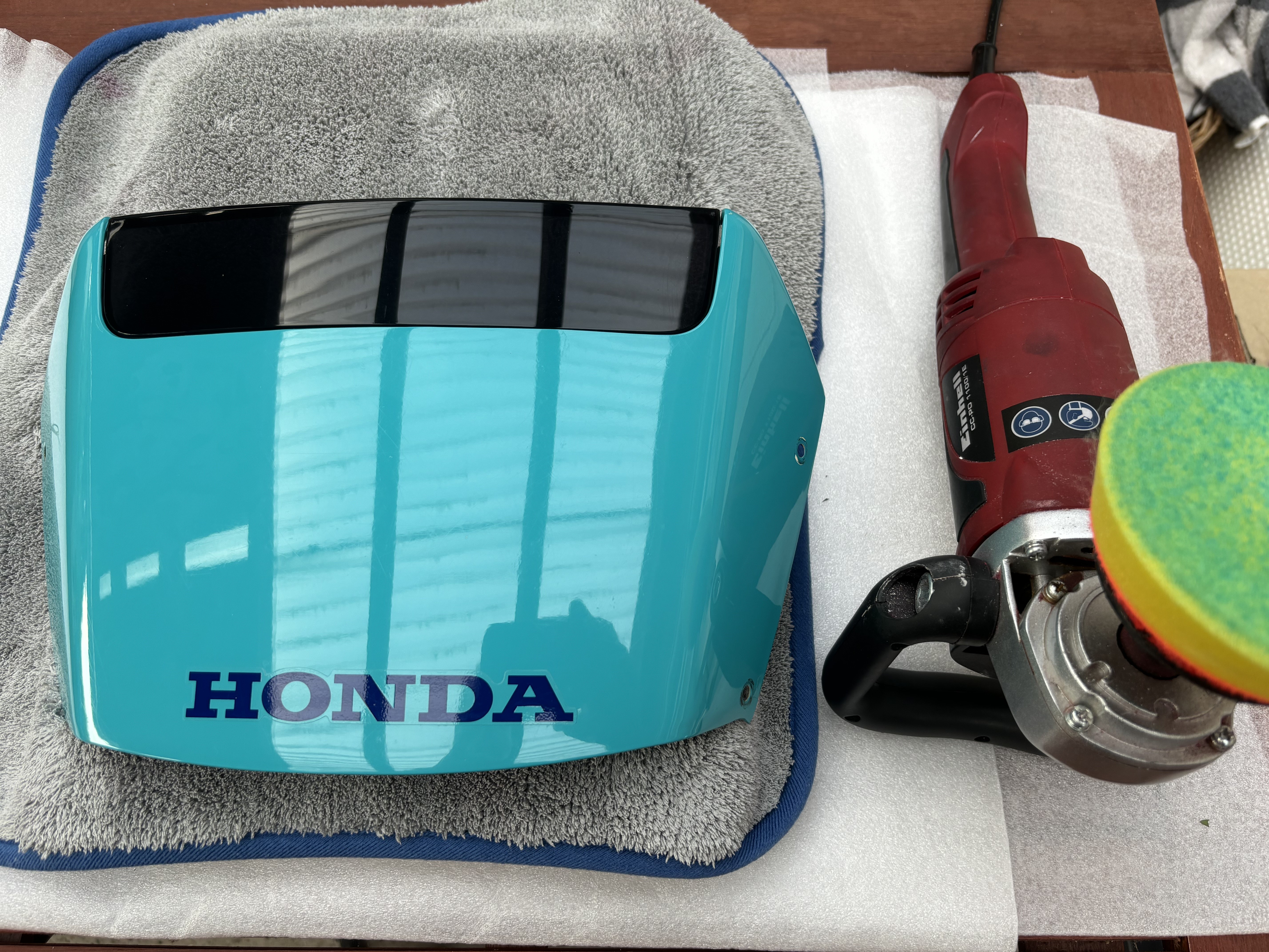 Und jetzt was zur Optik...Oberes Windschild dank Ebay....dann aufgearbeitet...seht, wird schick...ich weiß Farbe ist Geschmackssache...