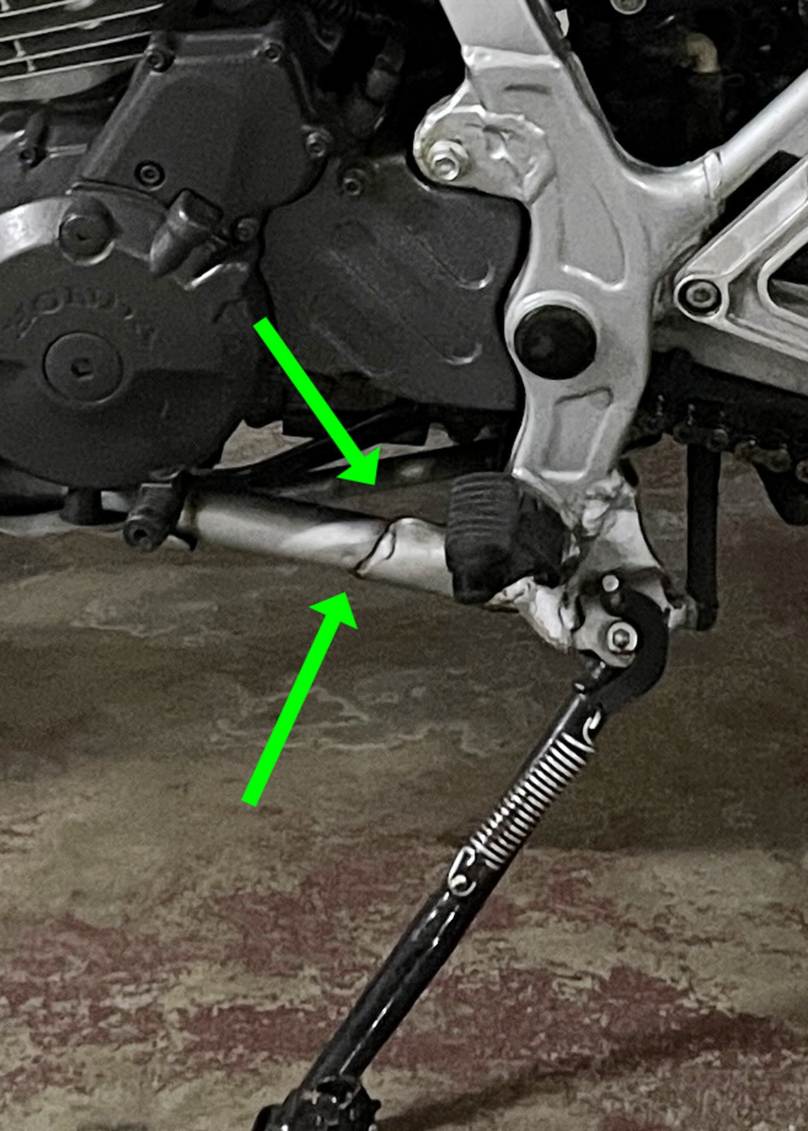Die Schweissnaht der Seitenständeraufnahme sieht auch "nachgearbeitet" aus. Evtl. hatte die nen nicht unerheblichen Unfallschaden ?!?