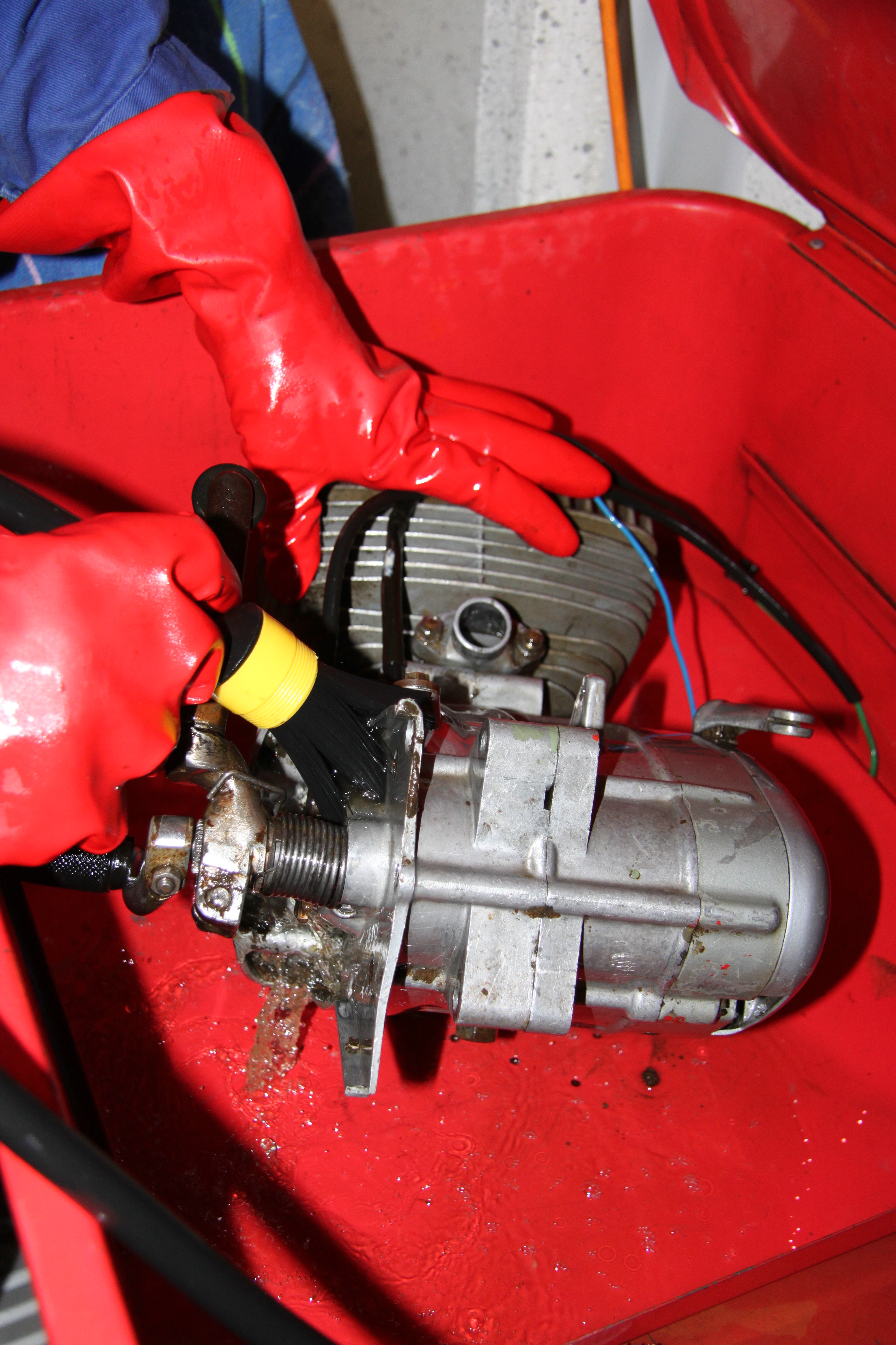 Grundreinigung des Motor vor dem Transfer in den Reinraum